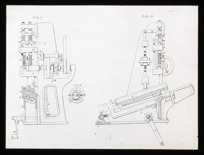 Glasdia "G. Watson" met afbeelding: "14 Machine Kapp...