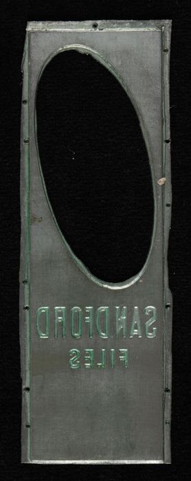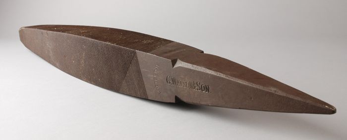 Glasdia "G. Watson" met afbeelding van "schoen-raspen"