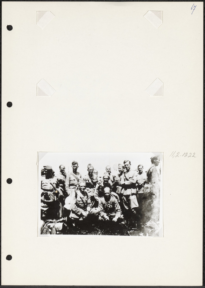 Groepsfoto Nederlandse militairen. Tekst achterop; "...