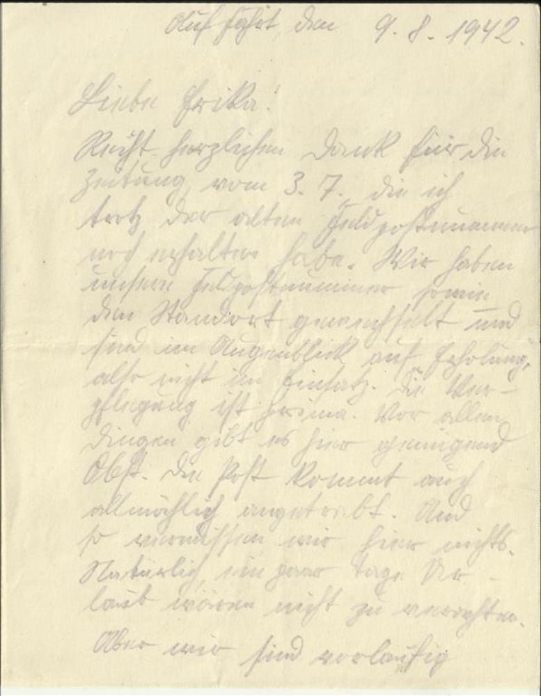 Brief van Heinrich (soldaat) Honig aan (niet meer le...