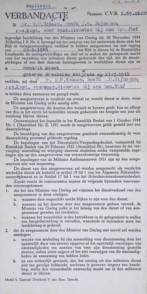 Verbandacte indiensttreding als Oorlogsvrijwilliger