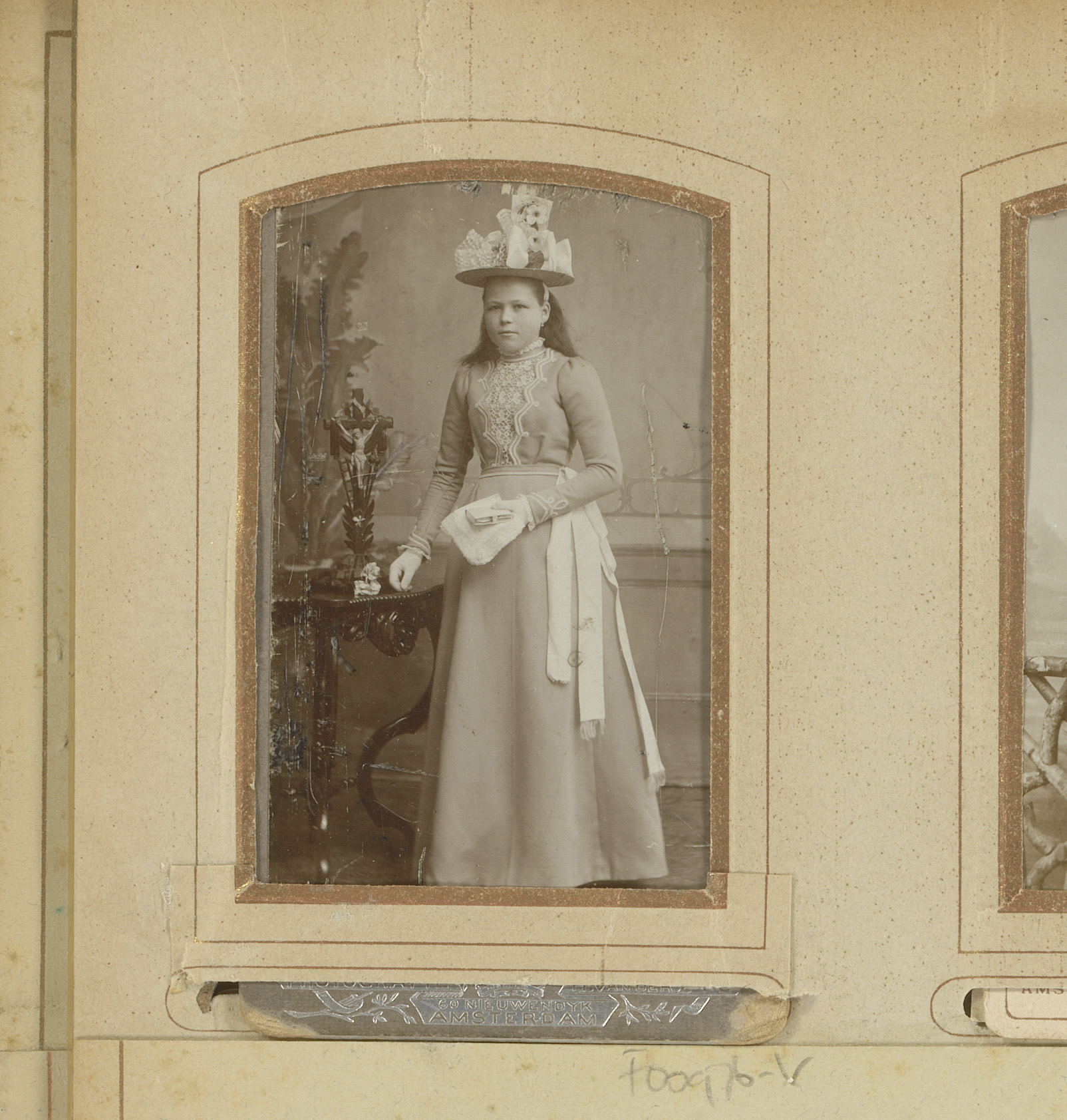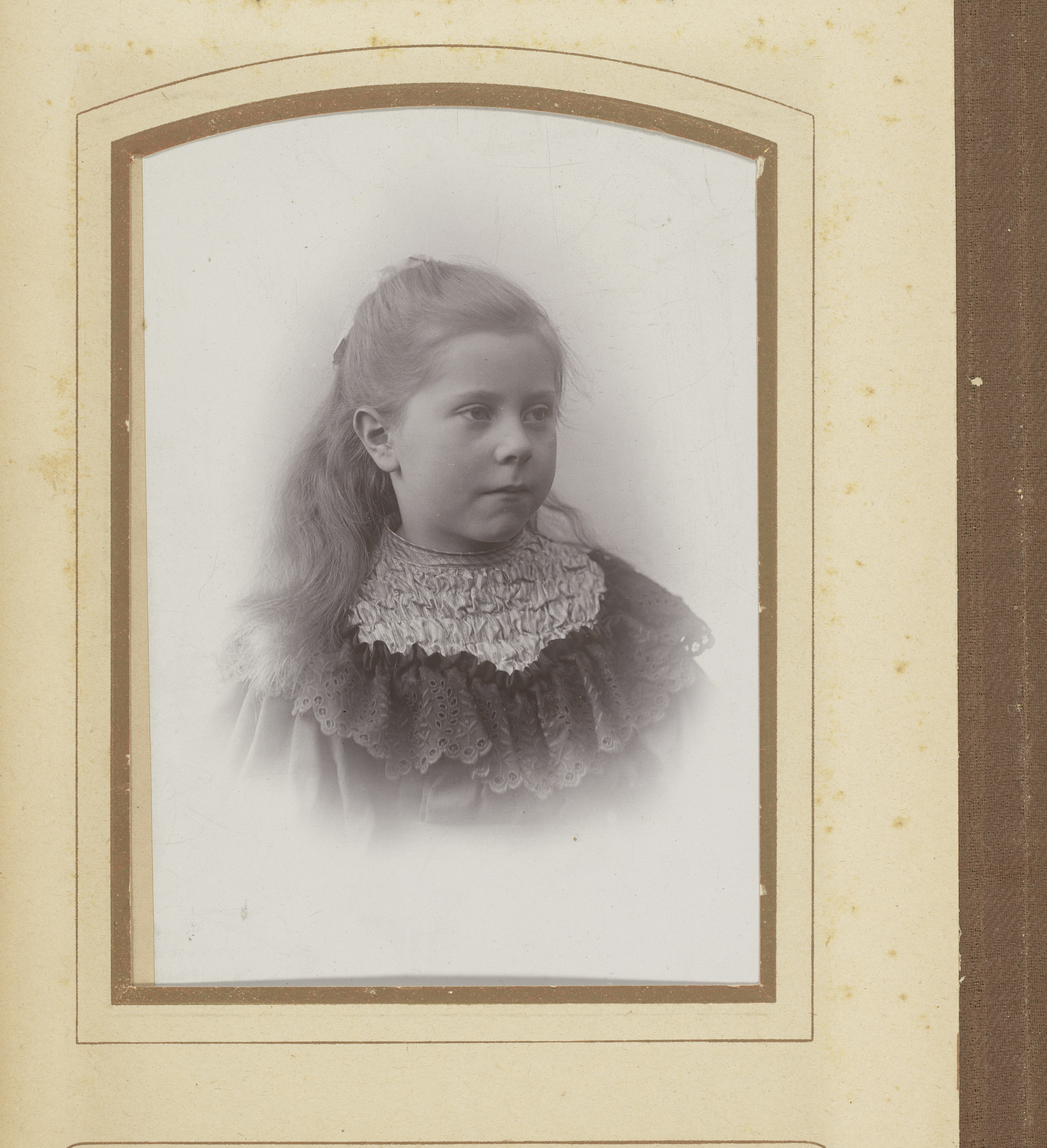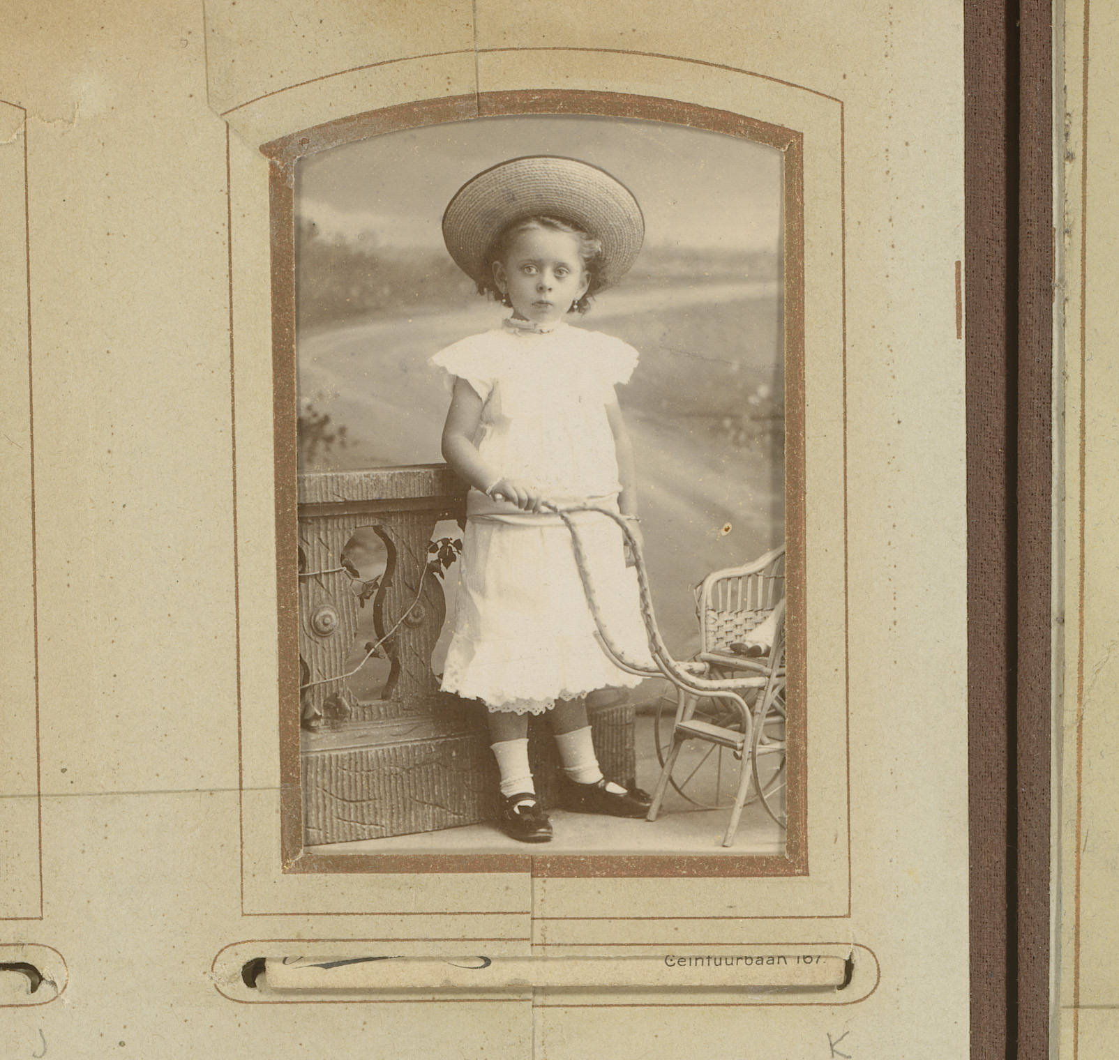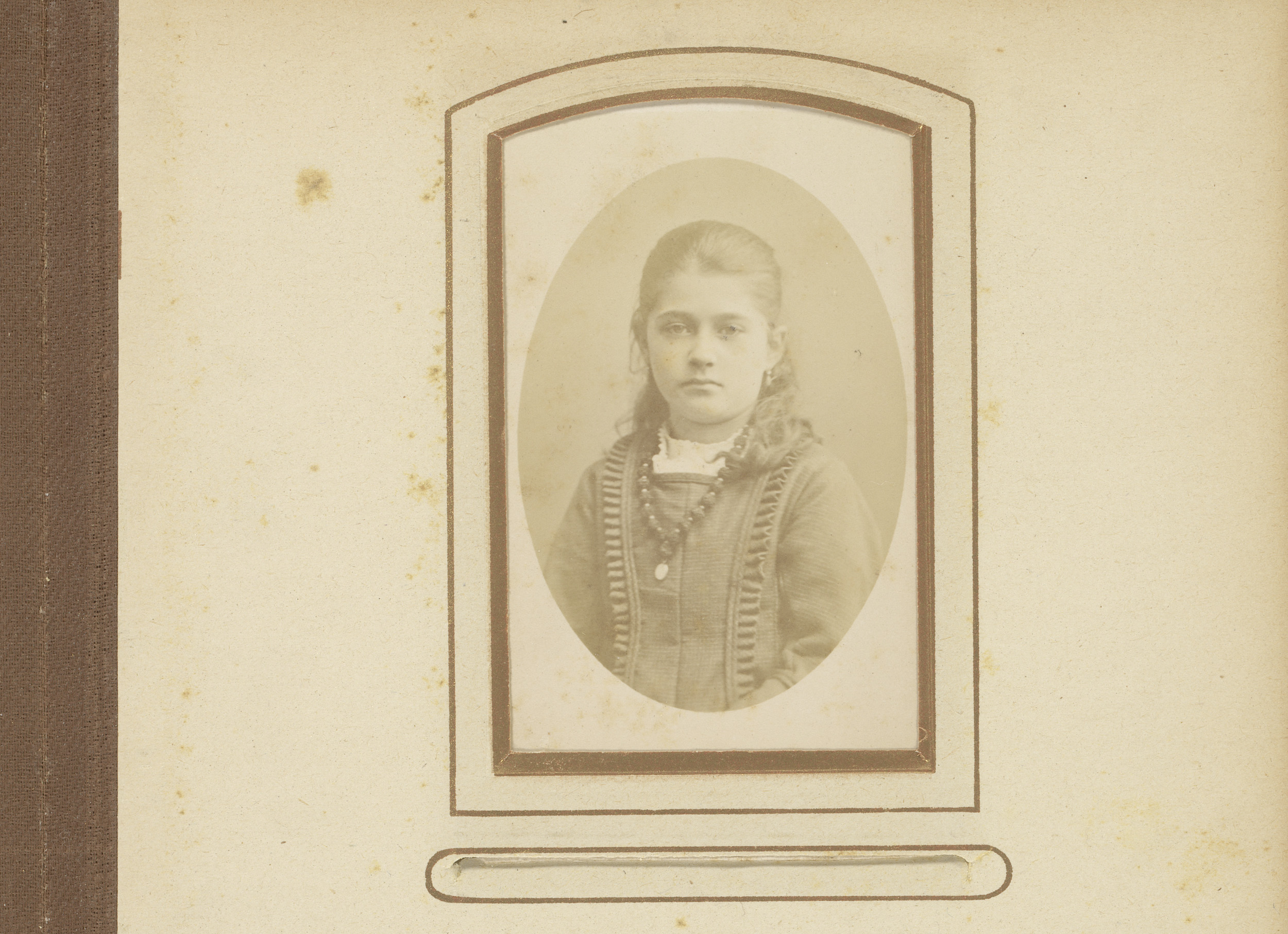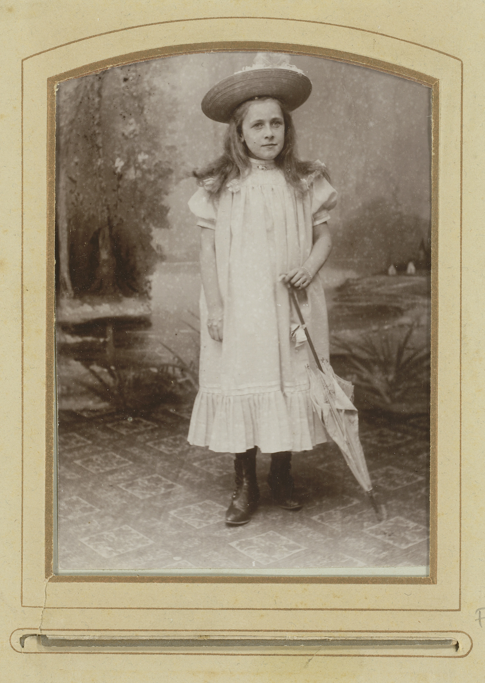 Portret van een meisje met hoed, witte sjerp, kerkbo...