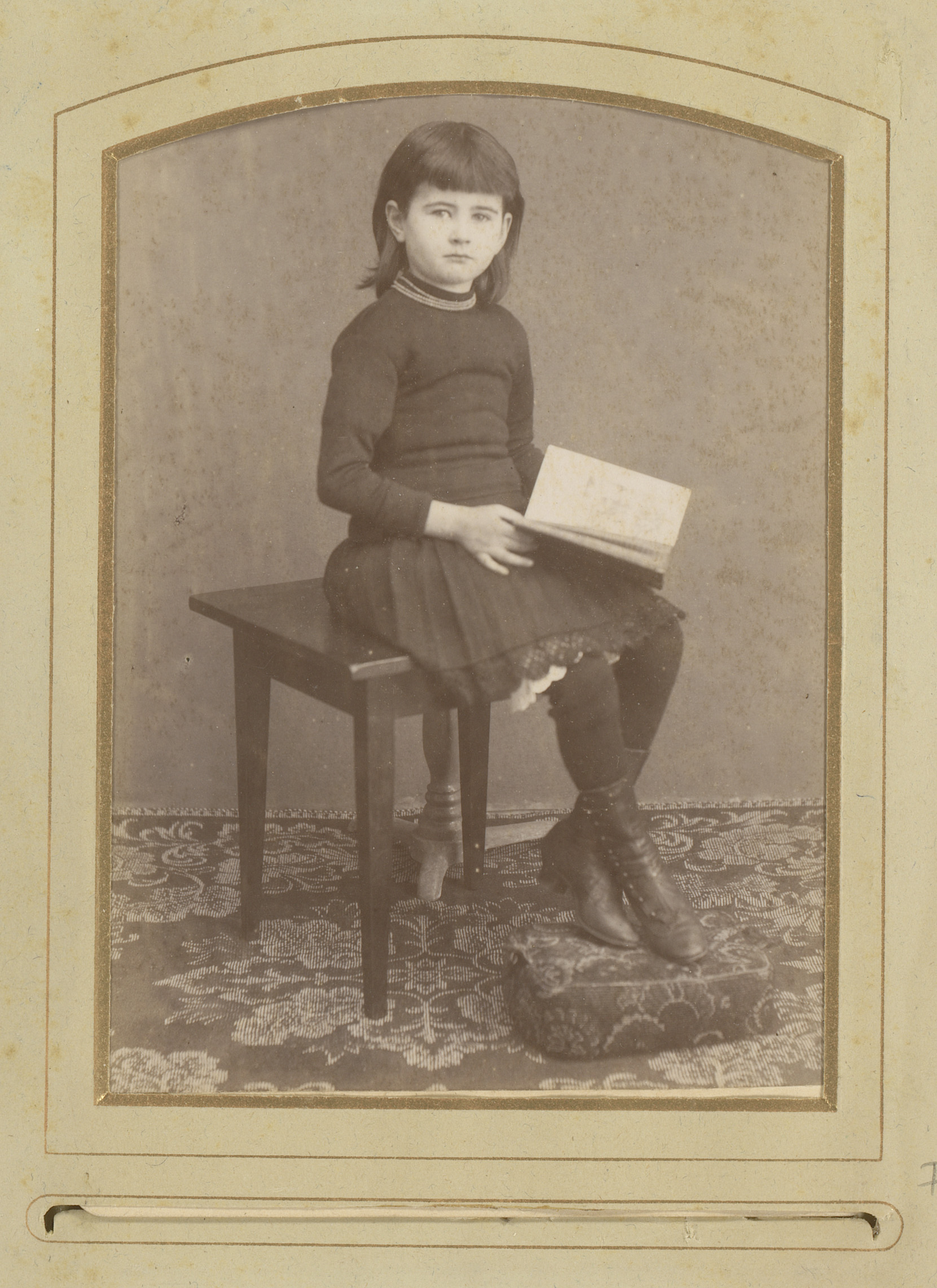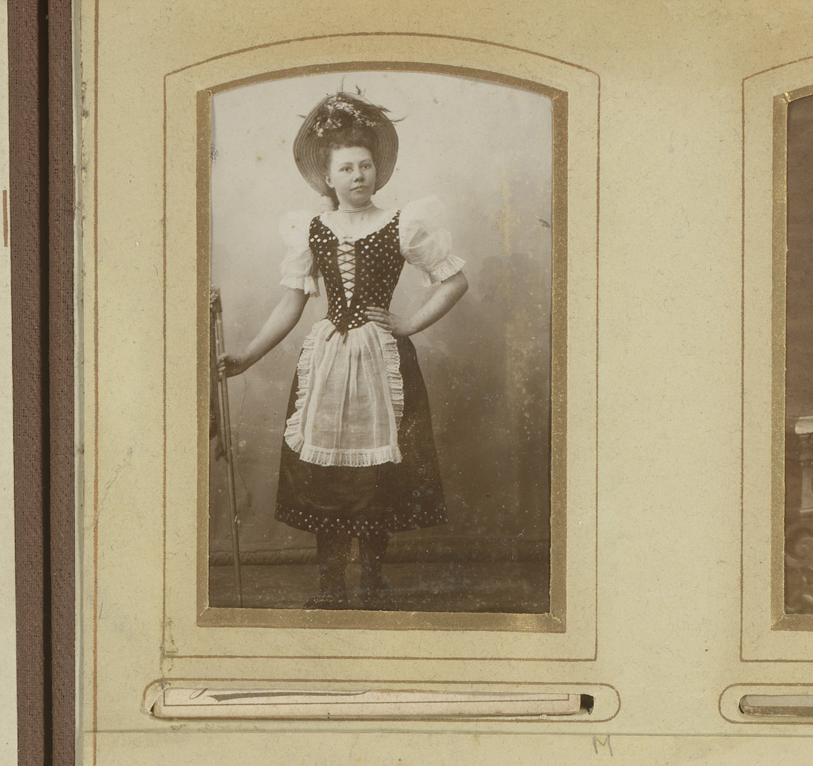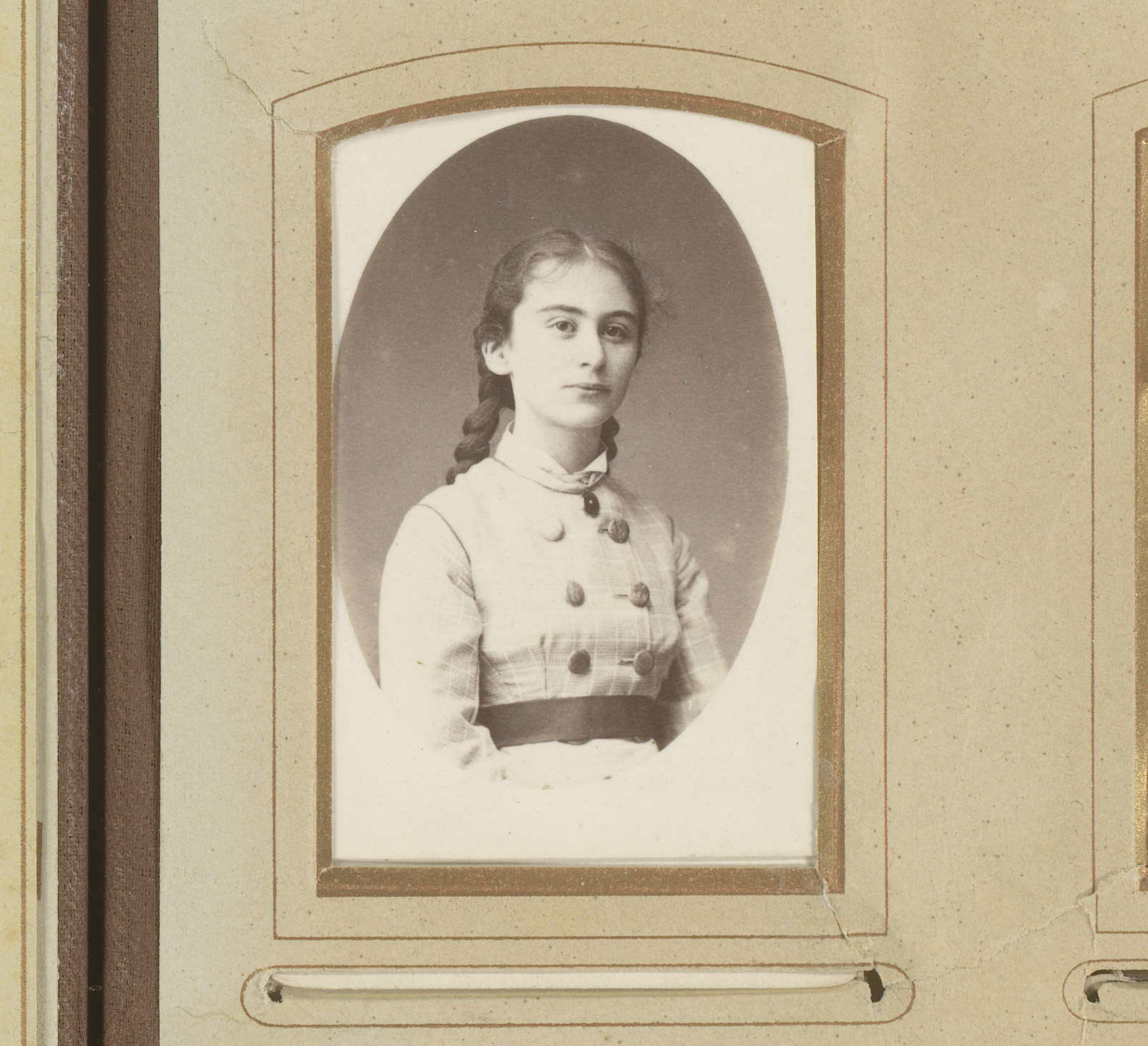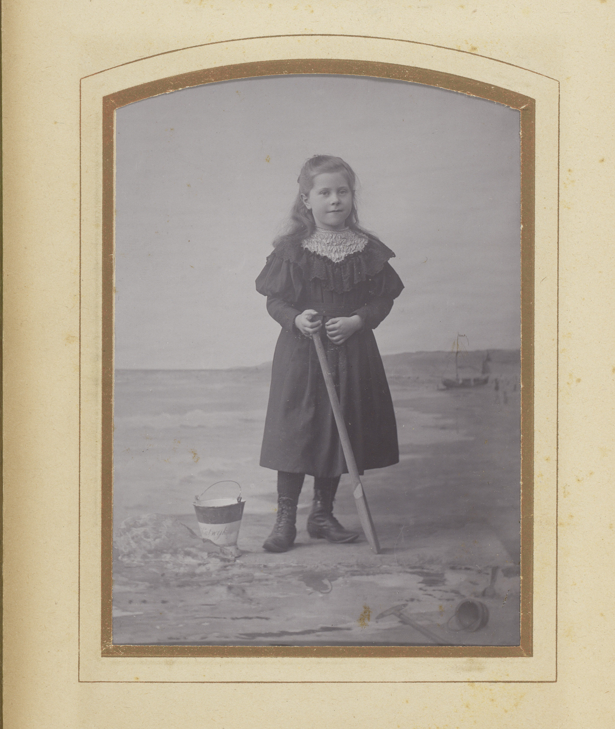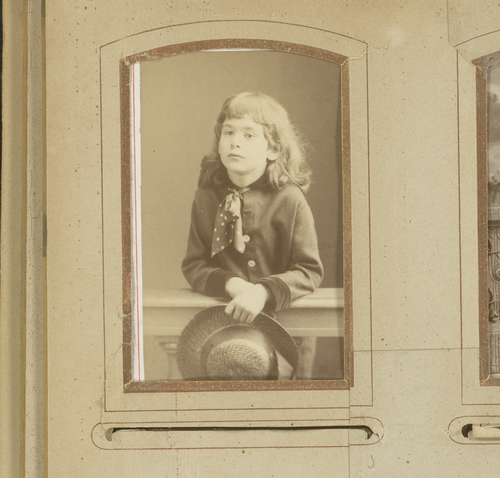 Portret van een meisje met hoed, witte sjerp, kerkbo...