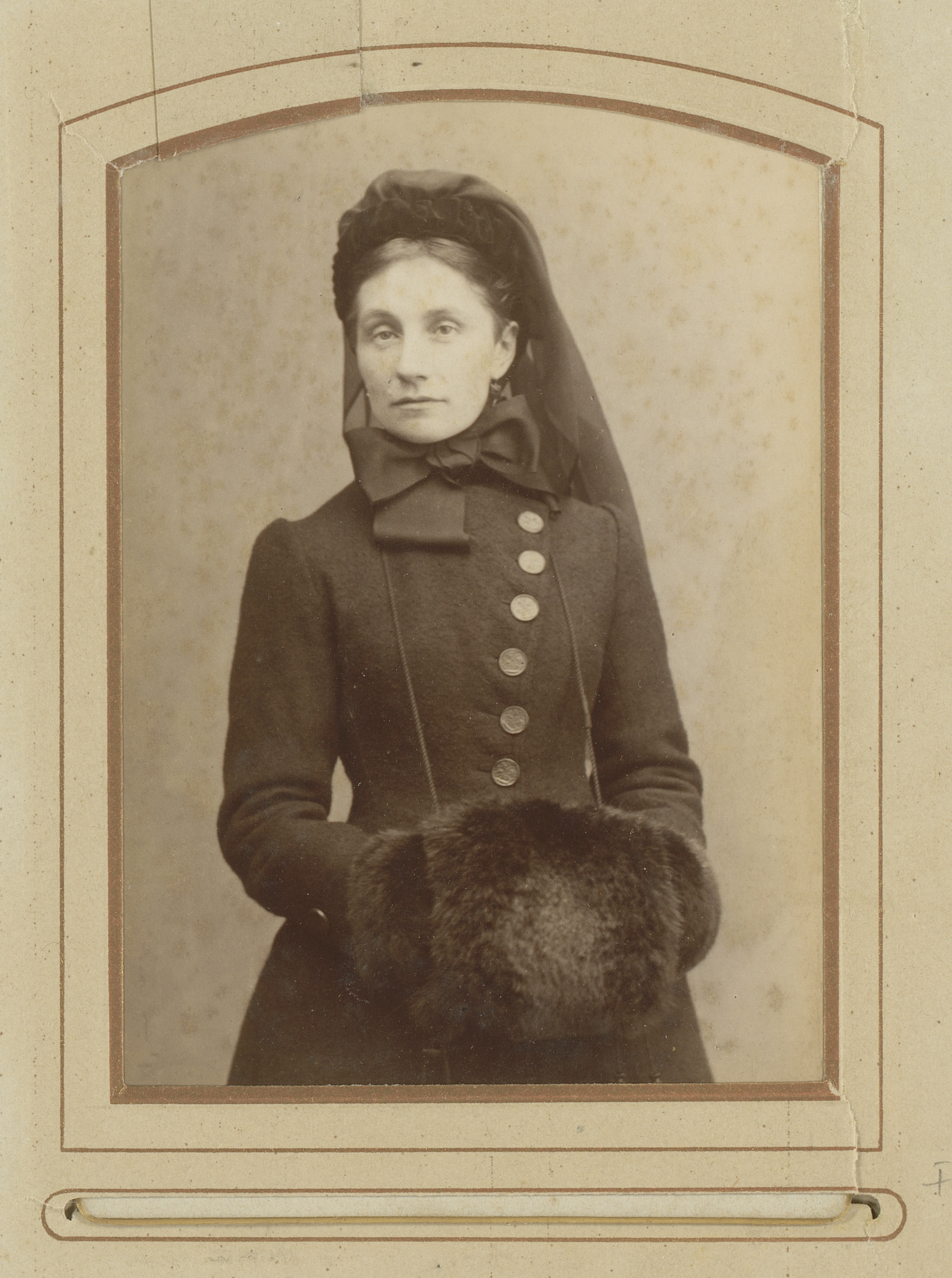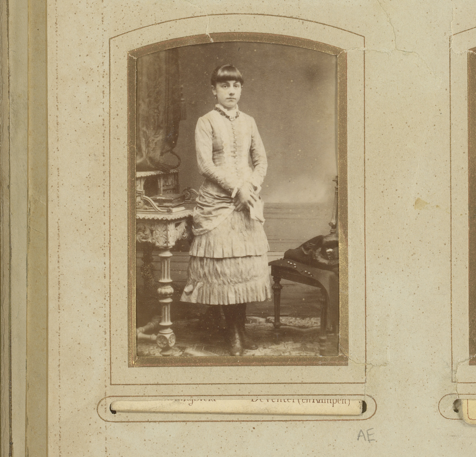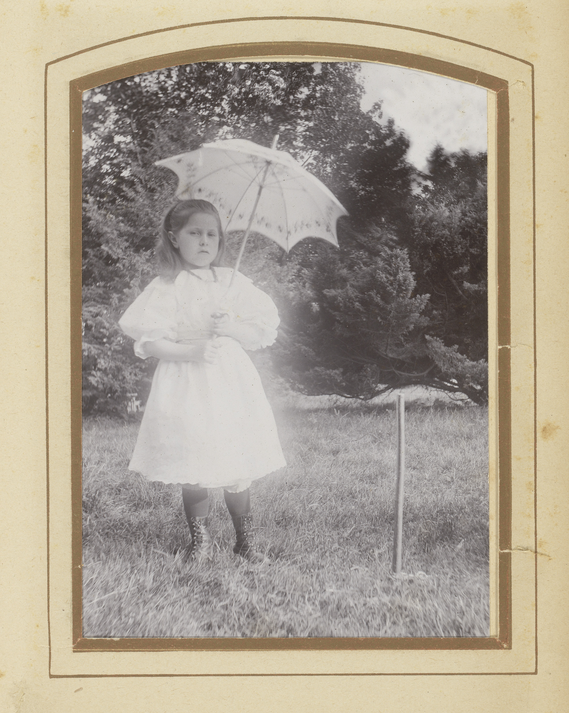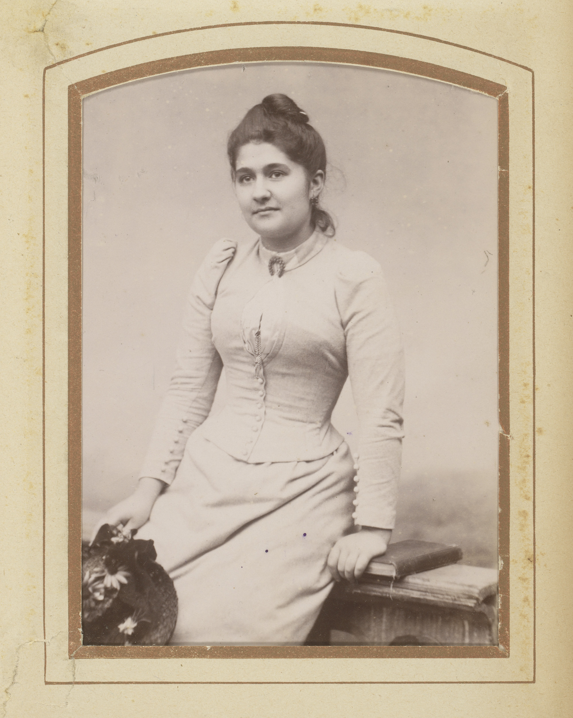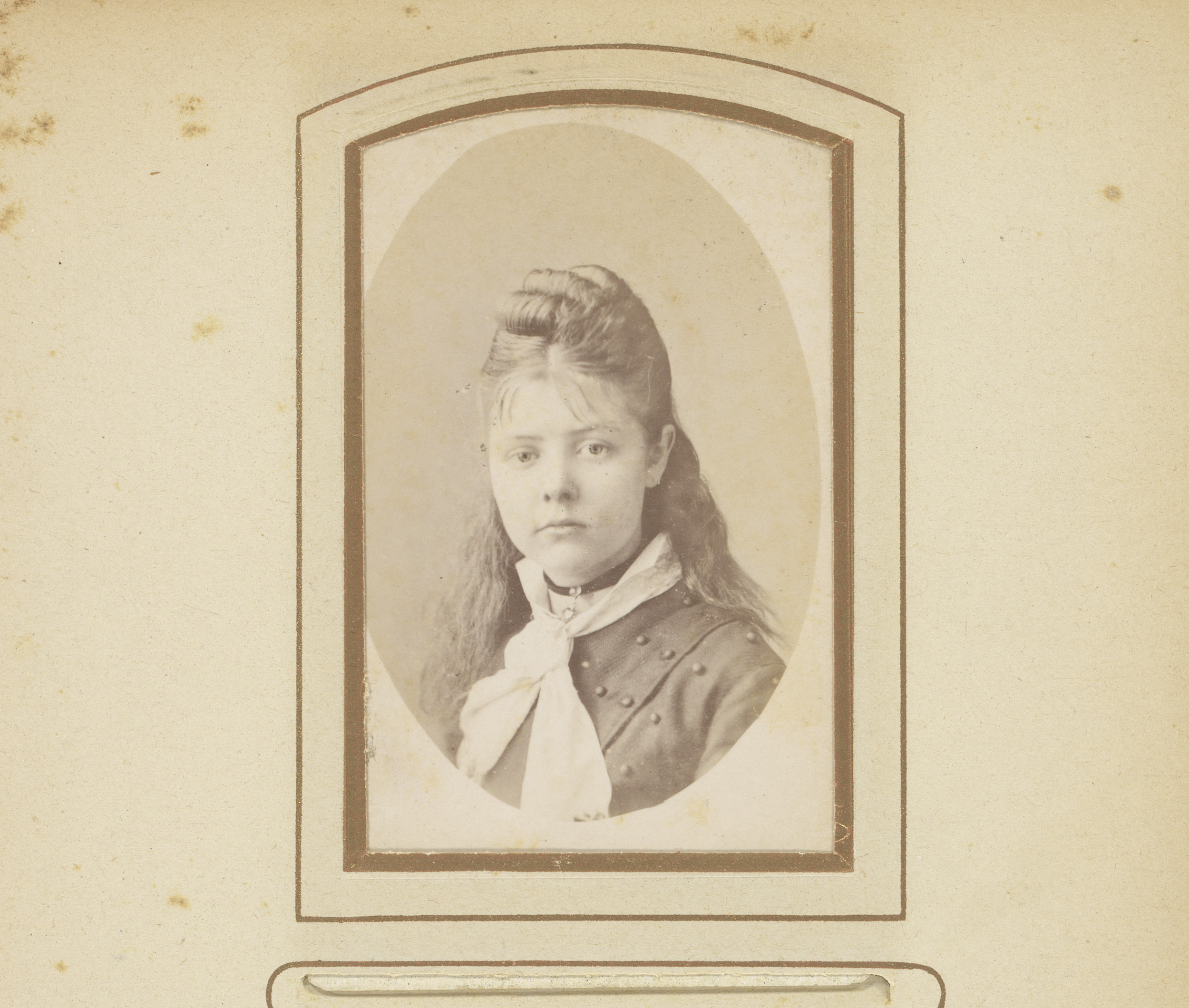 Portret van een meisje met hoed, witte sjerp, kerkbo...