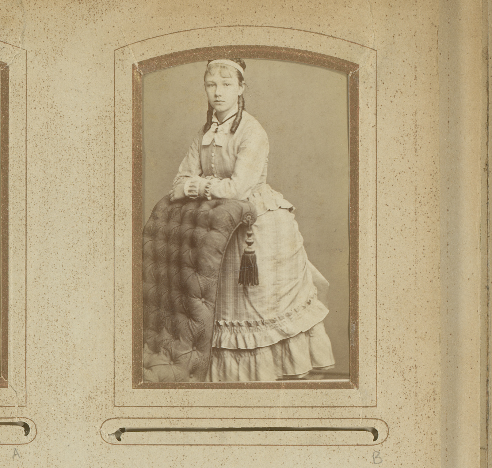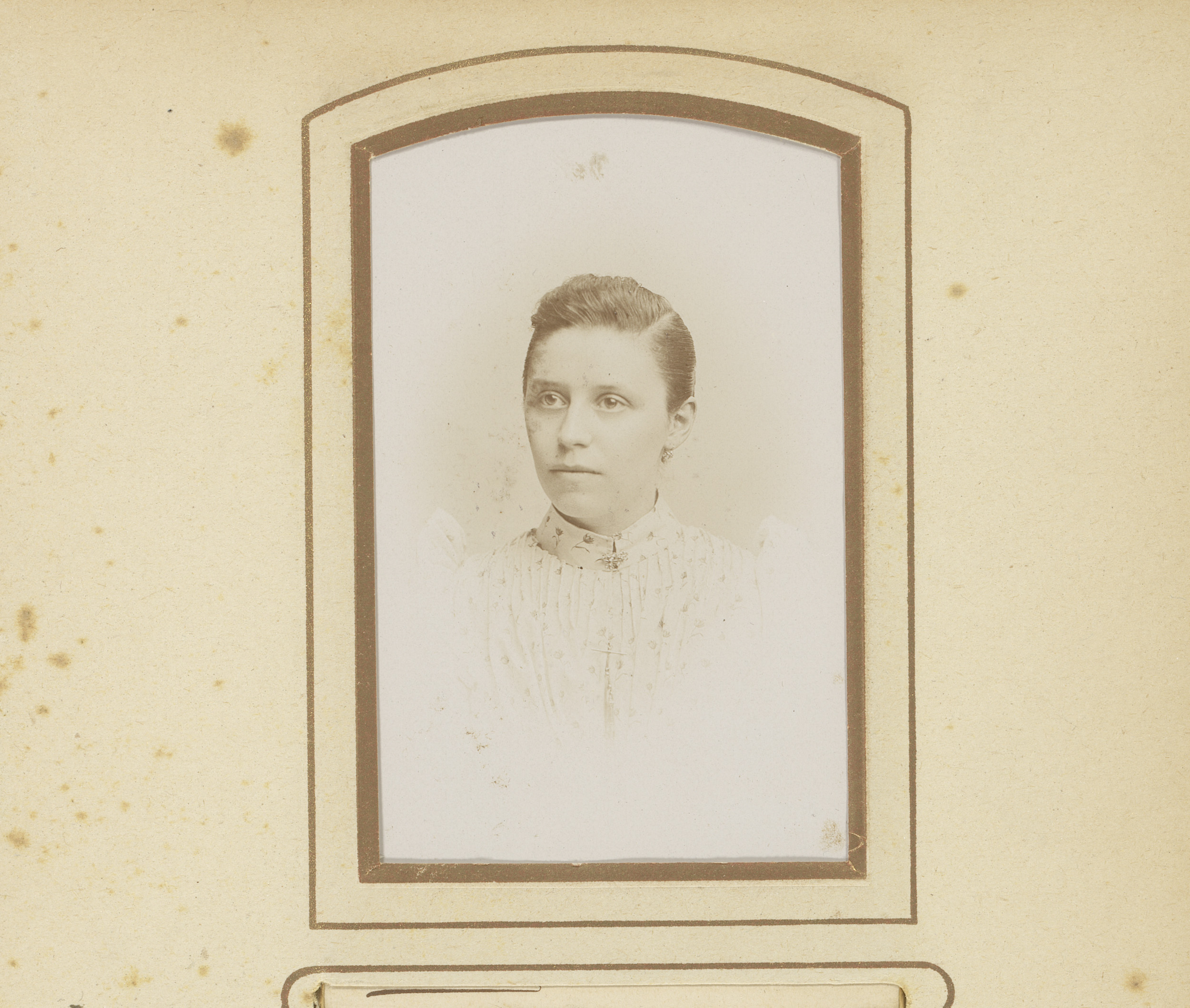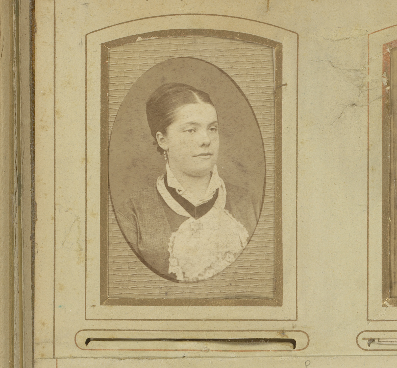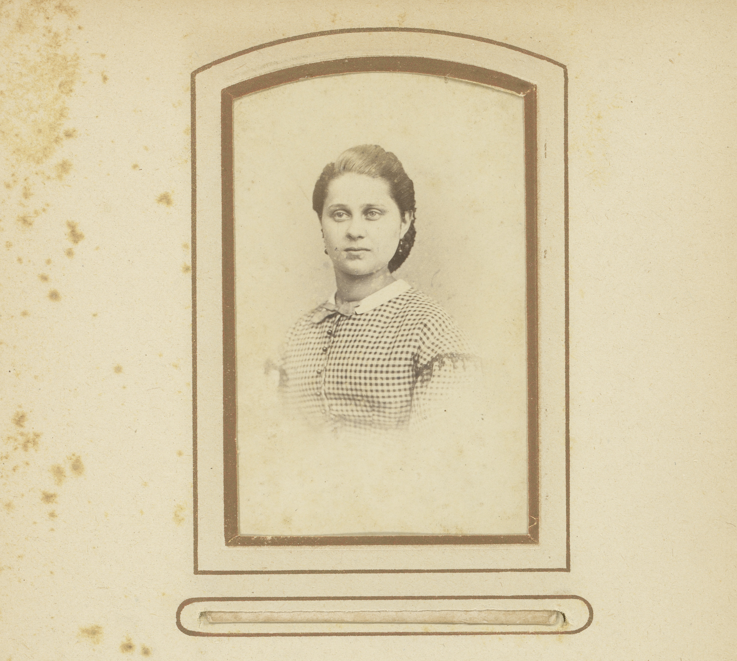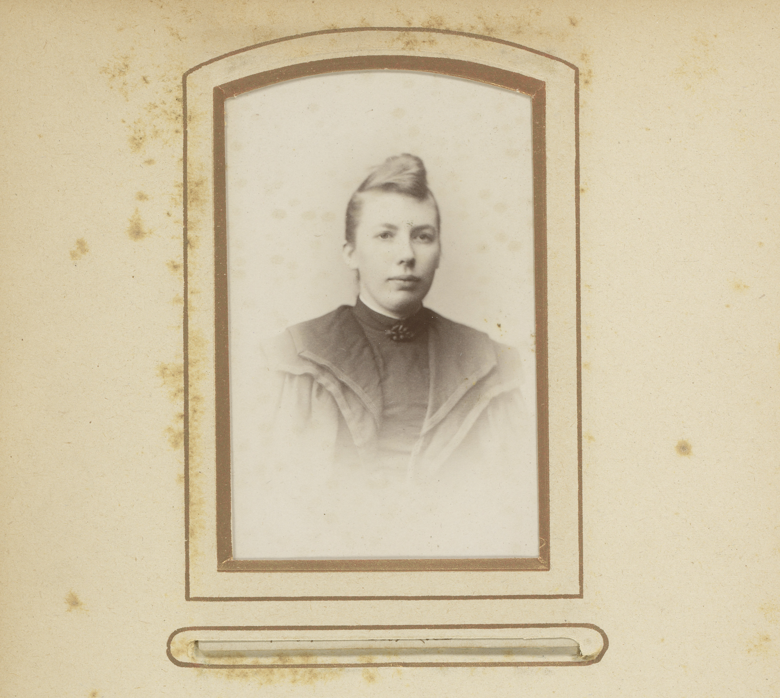 Portret van een meisje met hoed, witte sjerp, kerkbo...