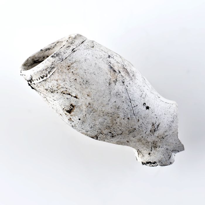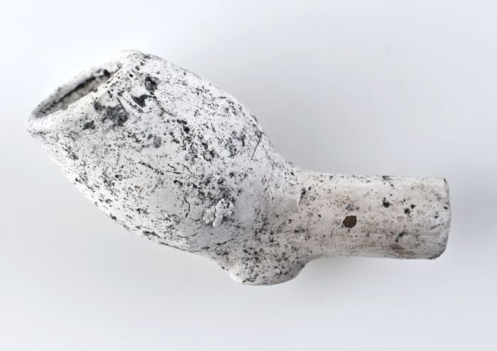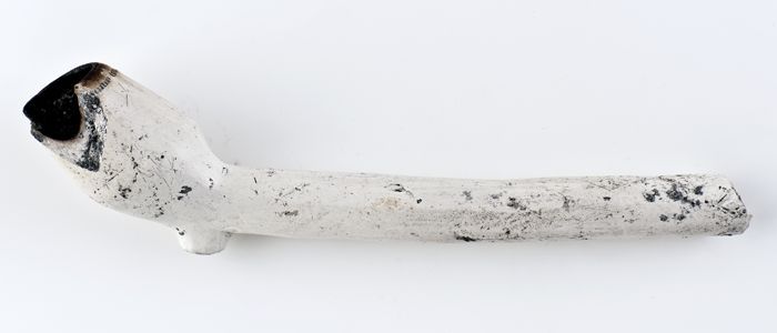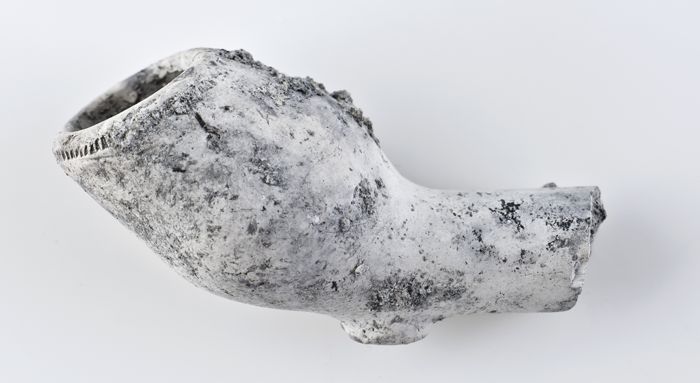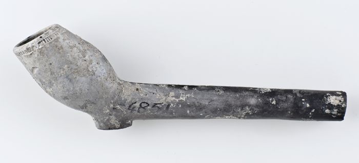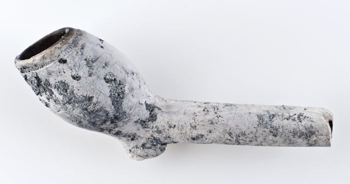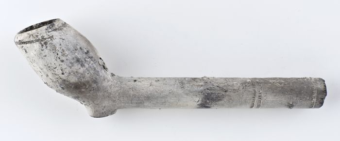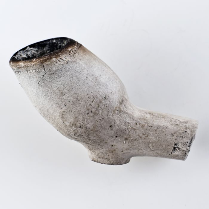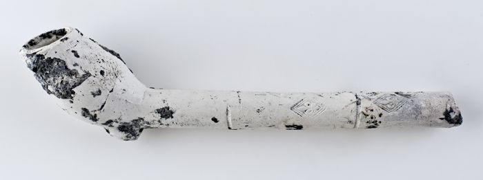 Kleipijp, gemerkt, met fleur de lis stempels versier...
