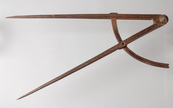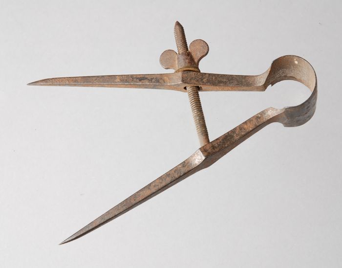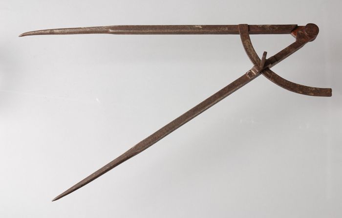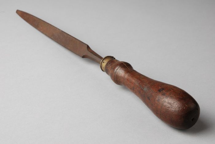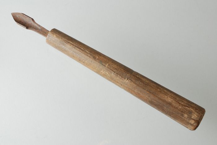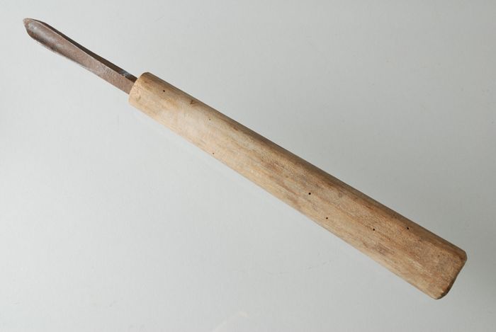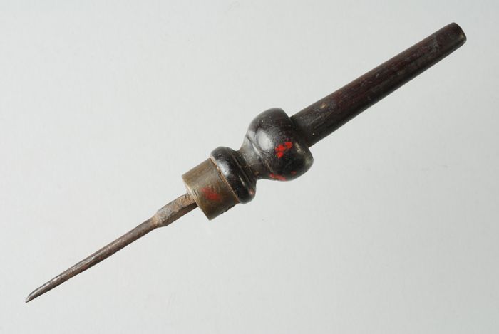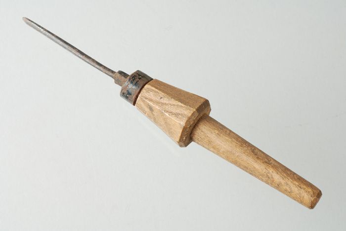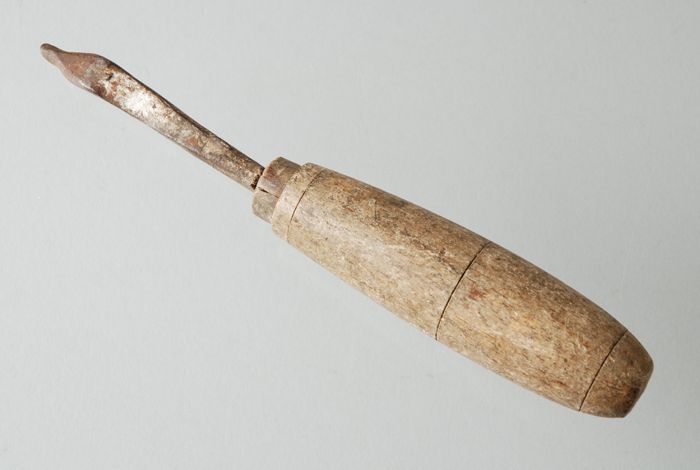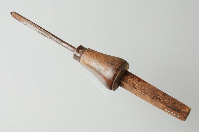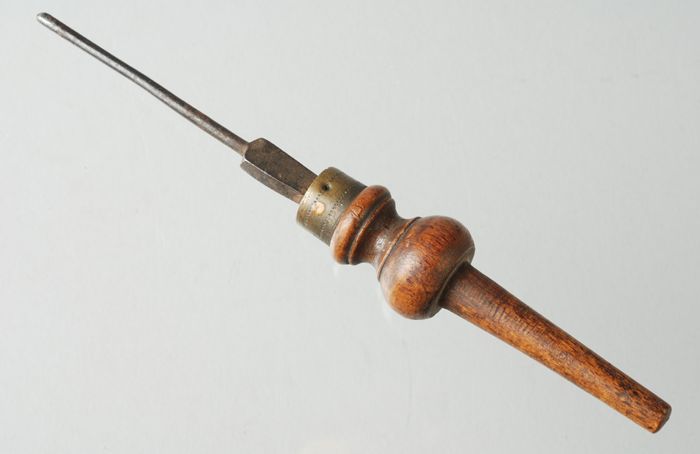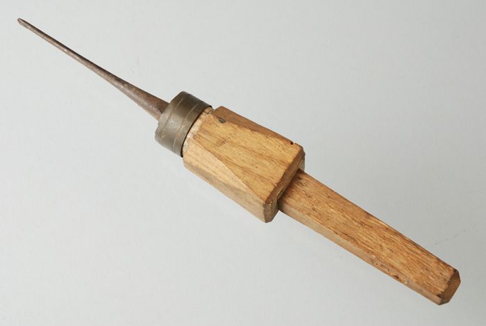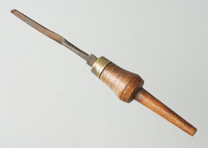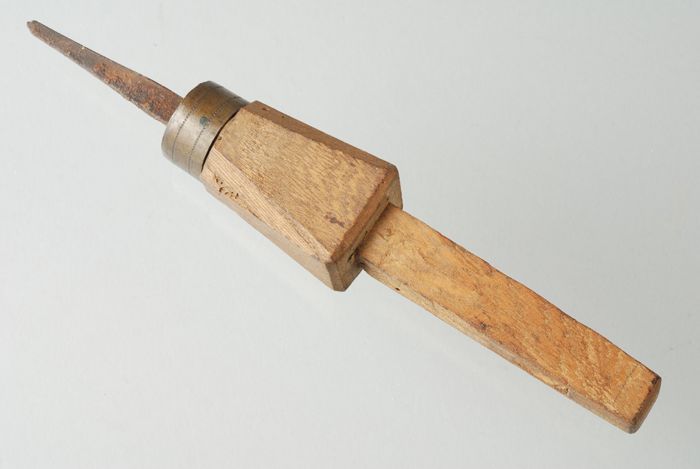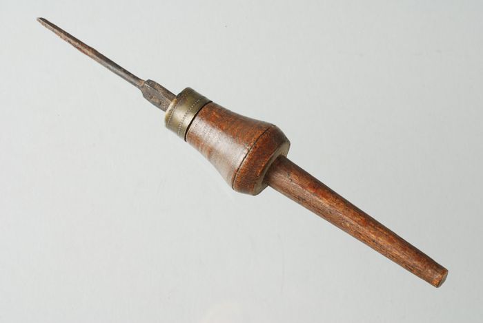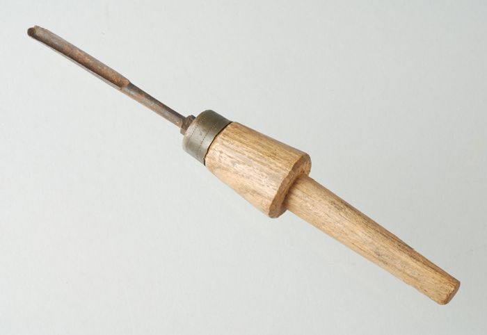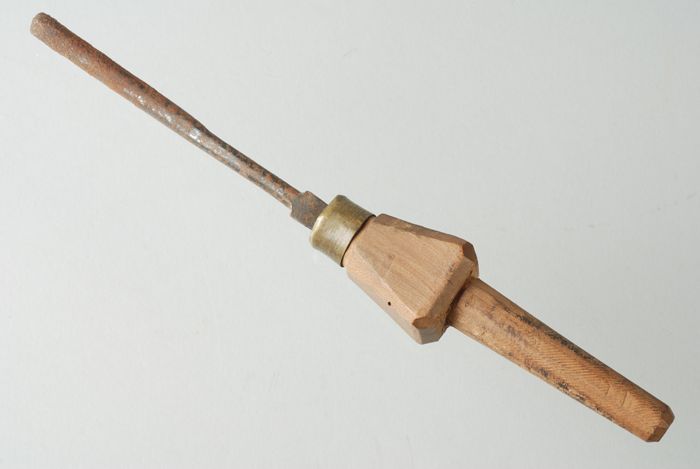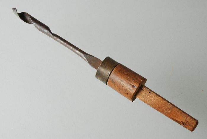 Lepelboor, gevat in houten stok, gereedschap van een...