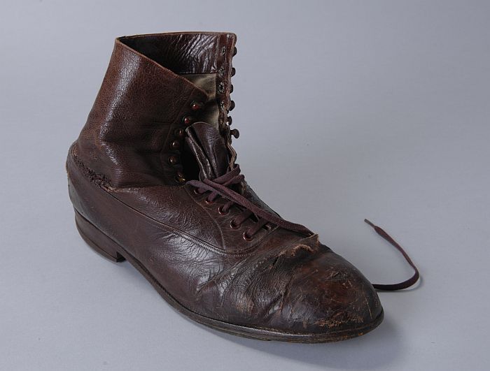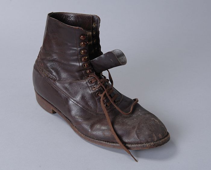 Bruine rechterlaars, afkomstig uit schoenmakerij Koster
