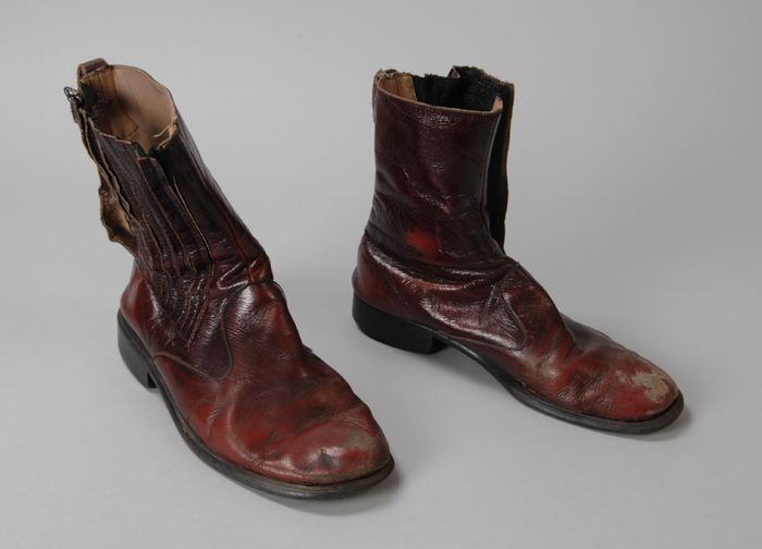 Paar donkerrode laarzen, afkomstig uit schoenmakerij...
