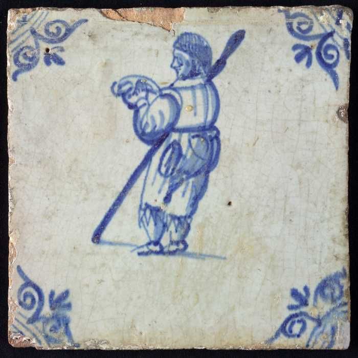 Beroepentegel, blauw, staande man met staf (?), hoek...