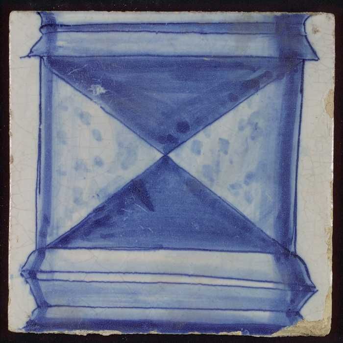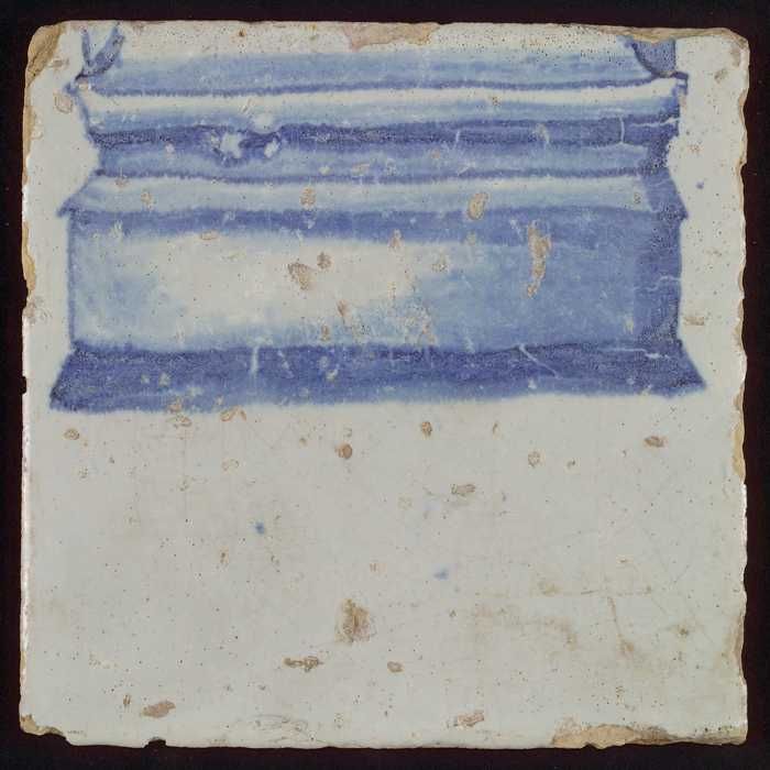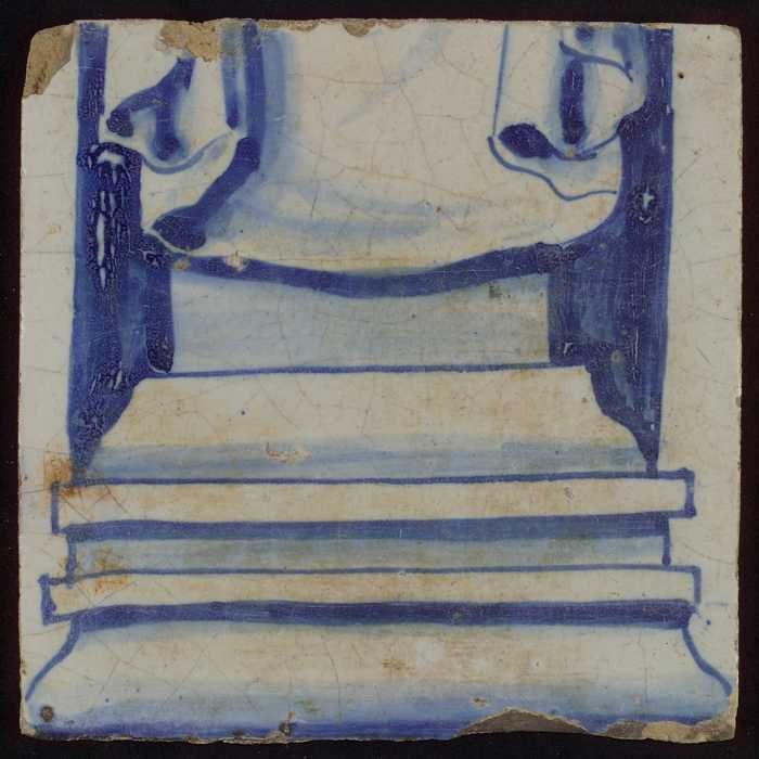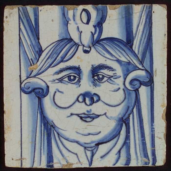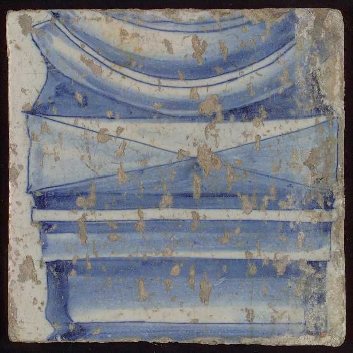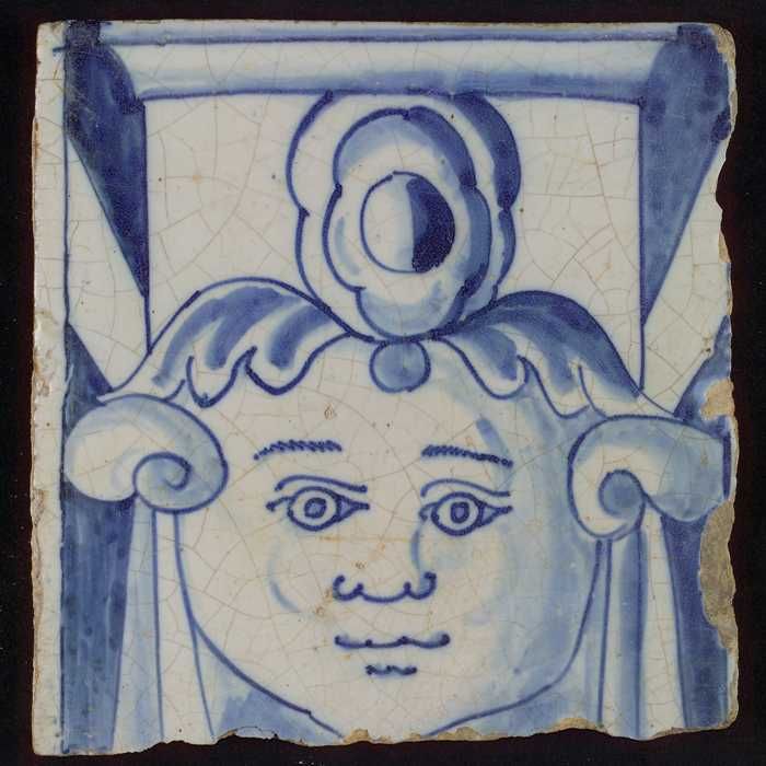 Losse tegel uit pilaster met decor in blauw, gelaat ...
