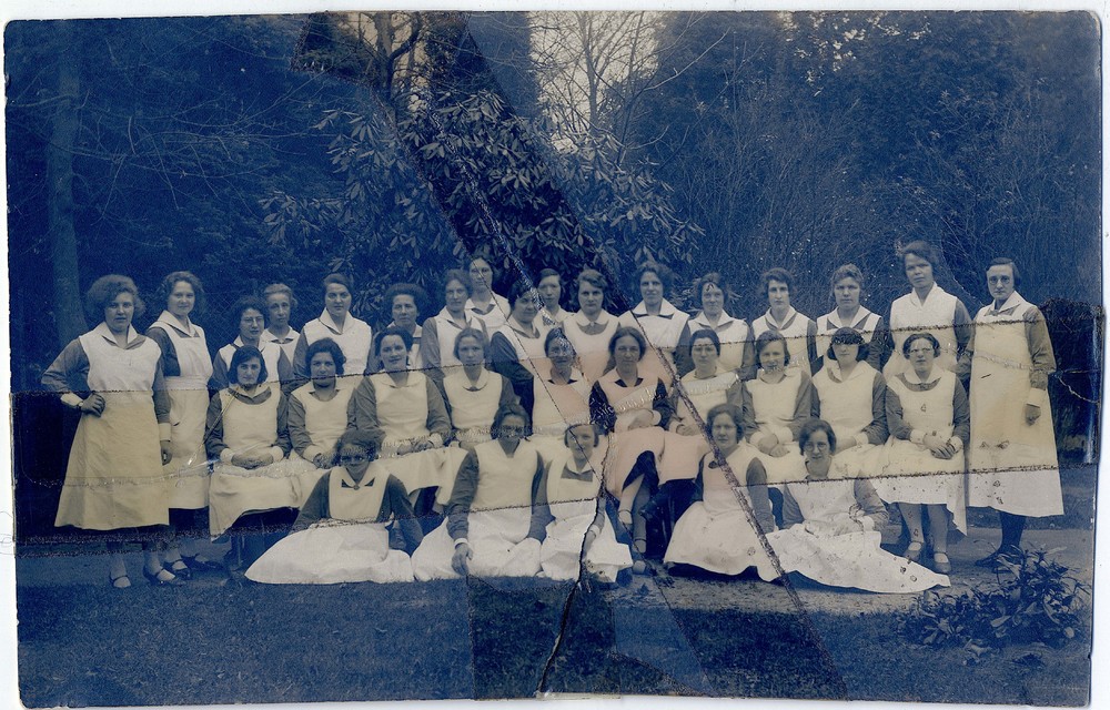 Klassenfoto ziekenverpleegsters in de tuin van het A...