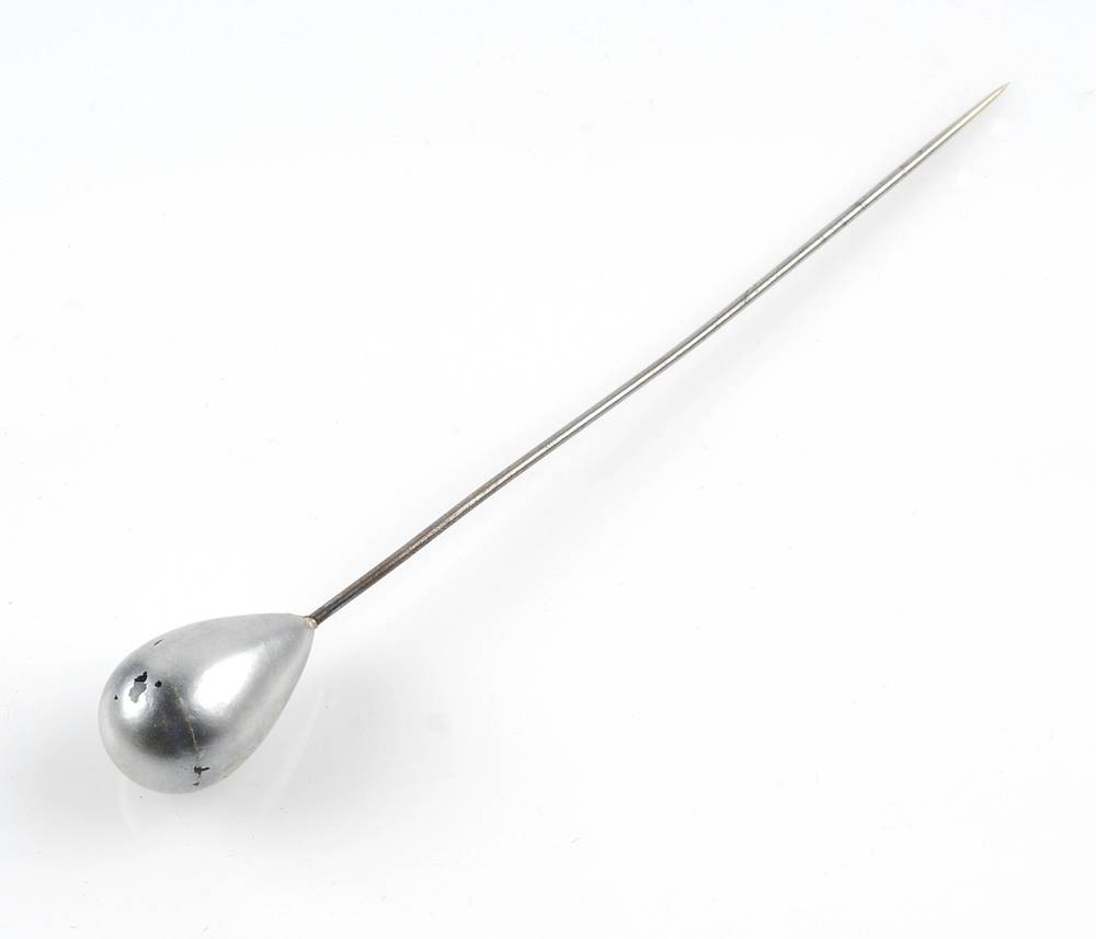 twee stuks metalen hoedenpennen met namaakparels, ca...