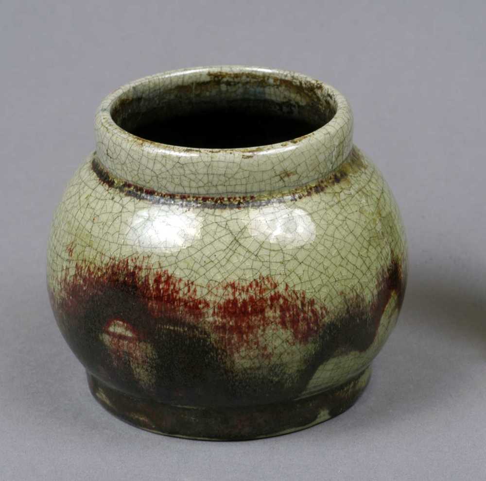 vaas van keramiek, groen/bruin van kleur.