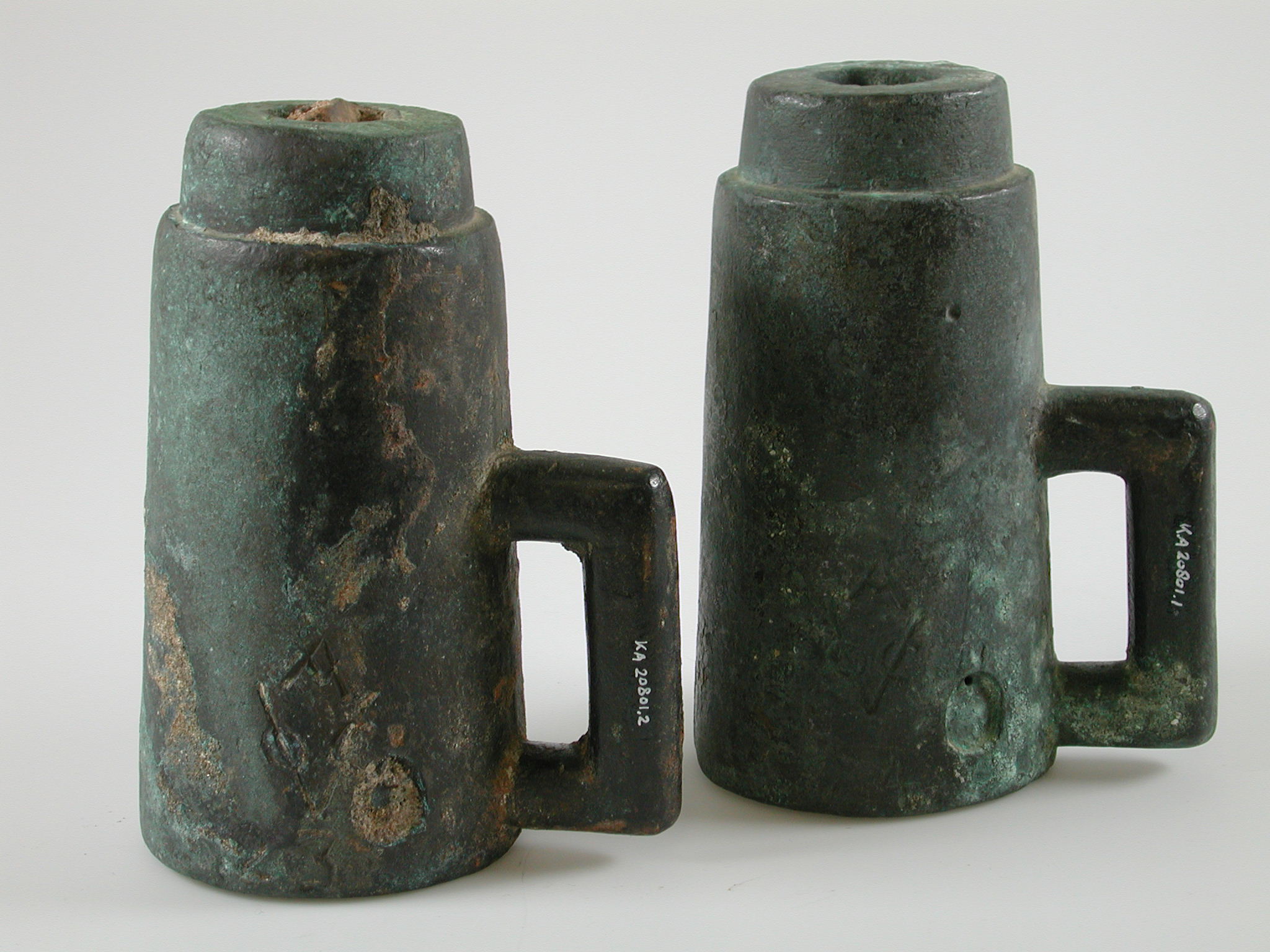 Twee laadkamers van draaibassen van een VOC-kanon