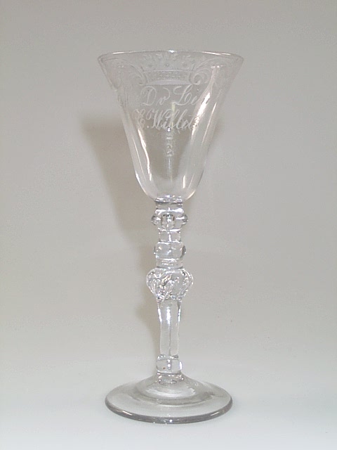 Kelkglas gegraveerd ter ere van huwelijk tussen Davi...