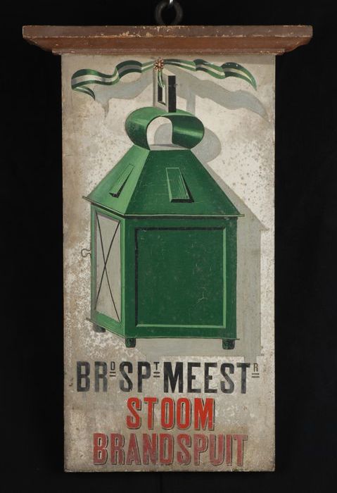 Houten wandbord "SPt No 8", "BRAND MEESTER"