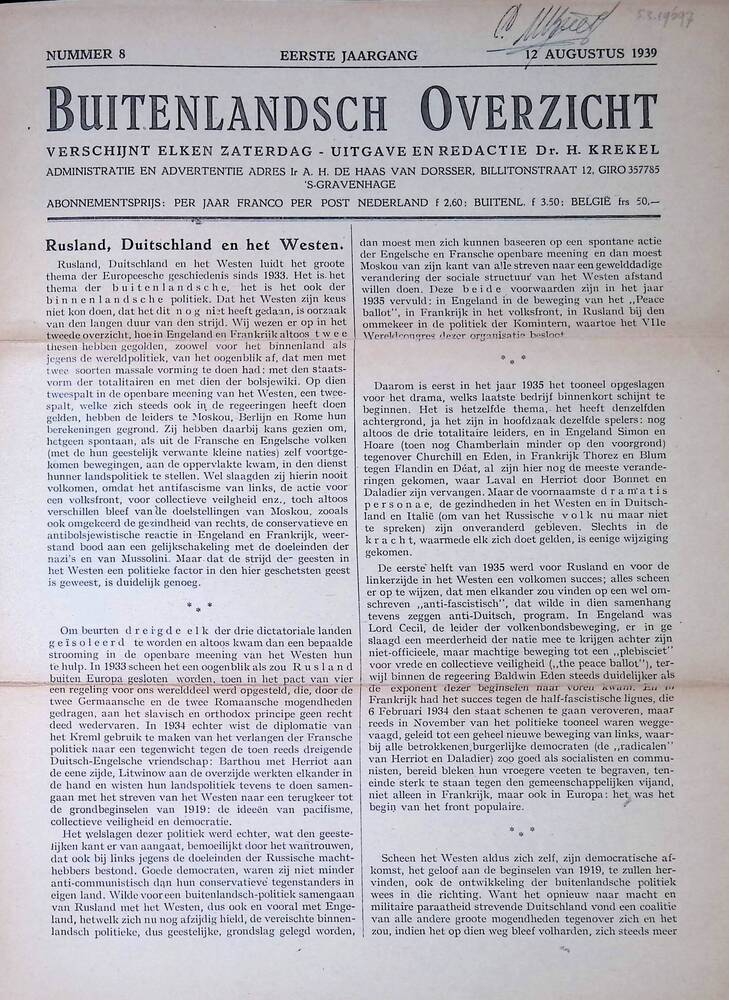 Buitenlandsch overzicht, 12 augustus 1939