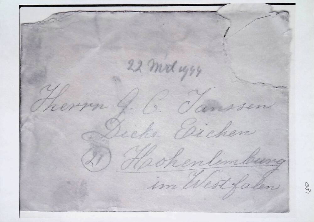 Brief in enveloppe. 22 maart 1944. Aan den heer G.C....