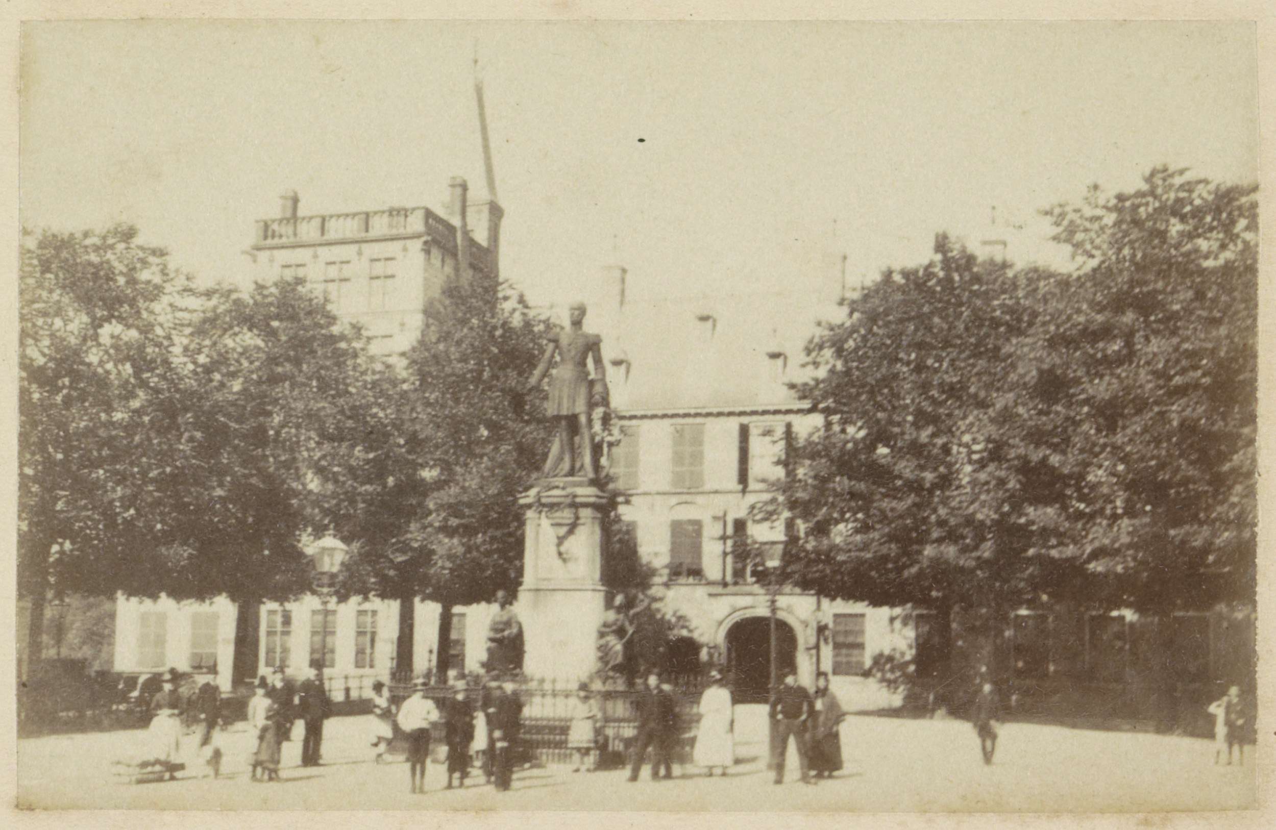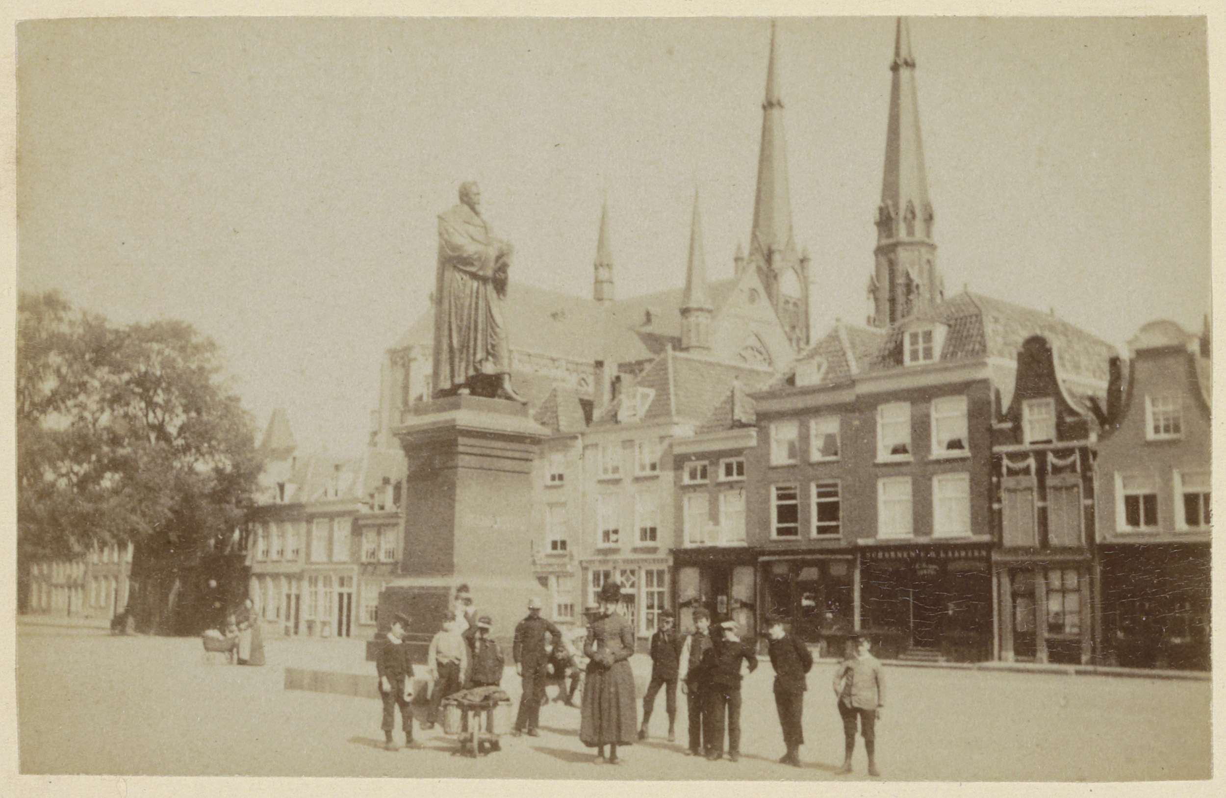 Gezicht op het standbeeld van Erasmus op de Grote Ma...