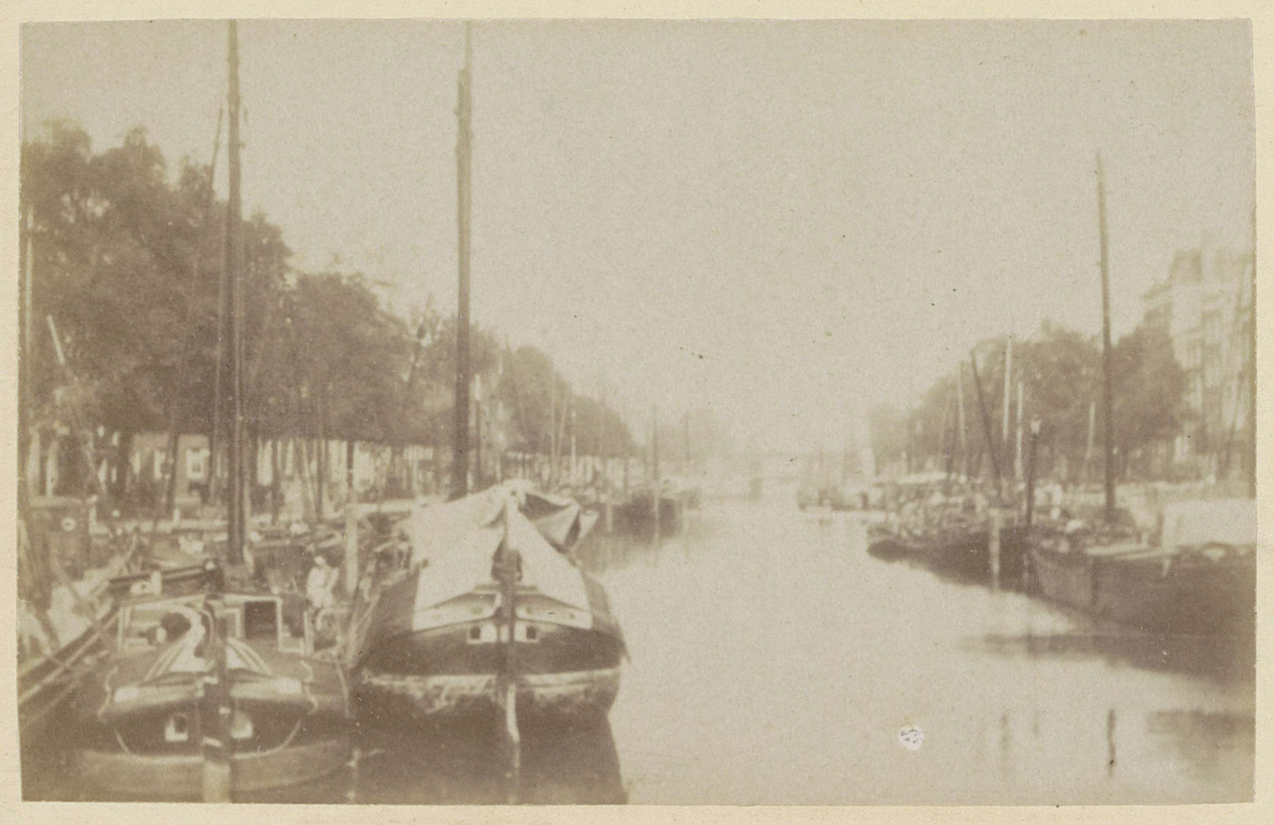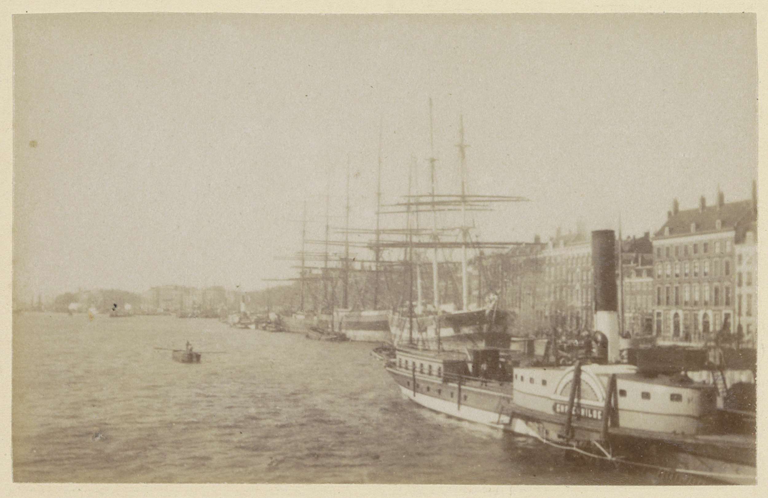 Gezicht op schepen aan de kade langs de Boompjes in ...