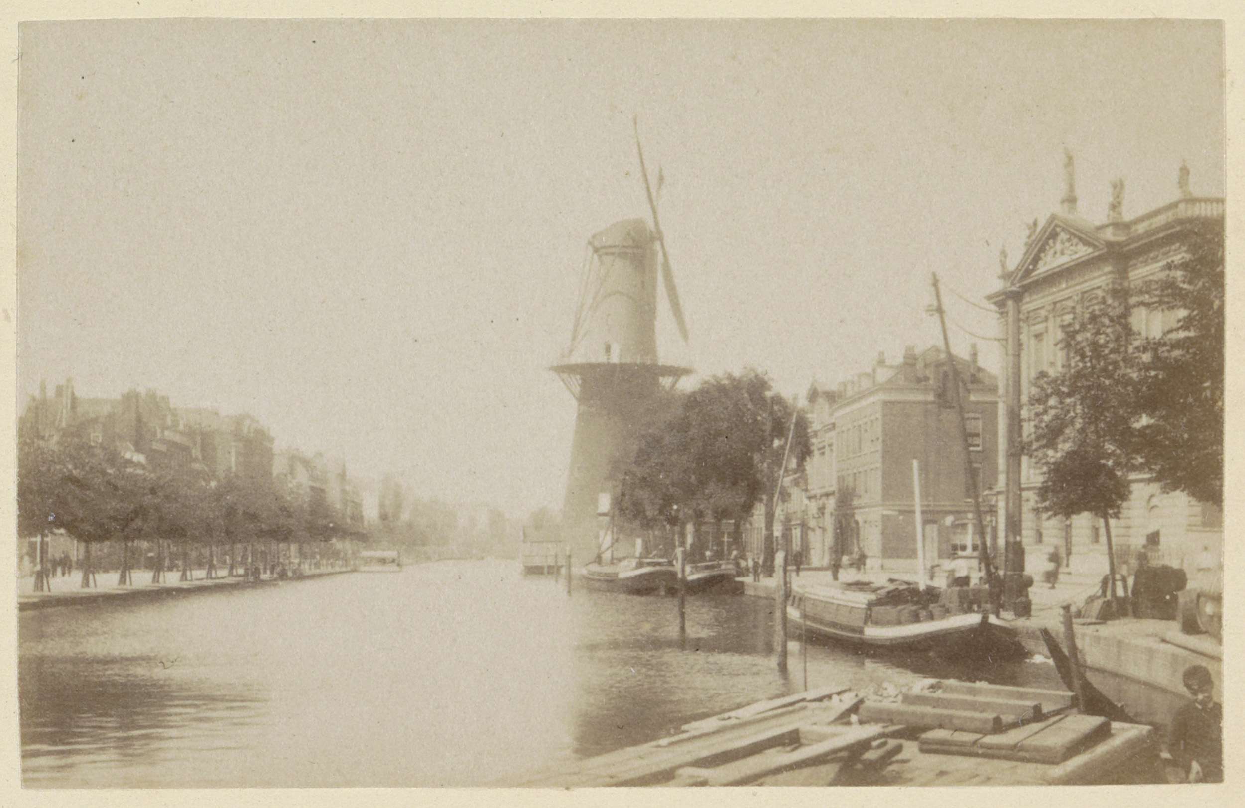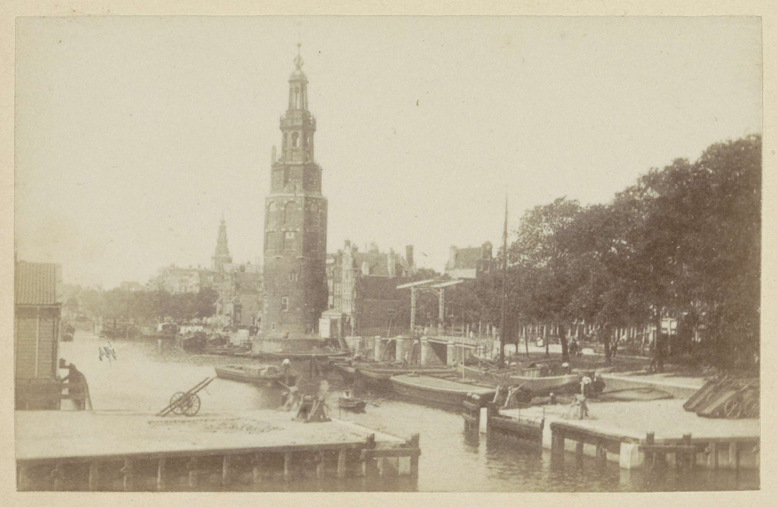 Gezicht op de Oude Schans in Amsterdam met centraal ...