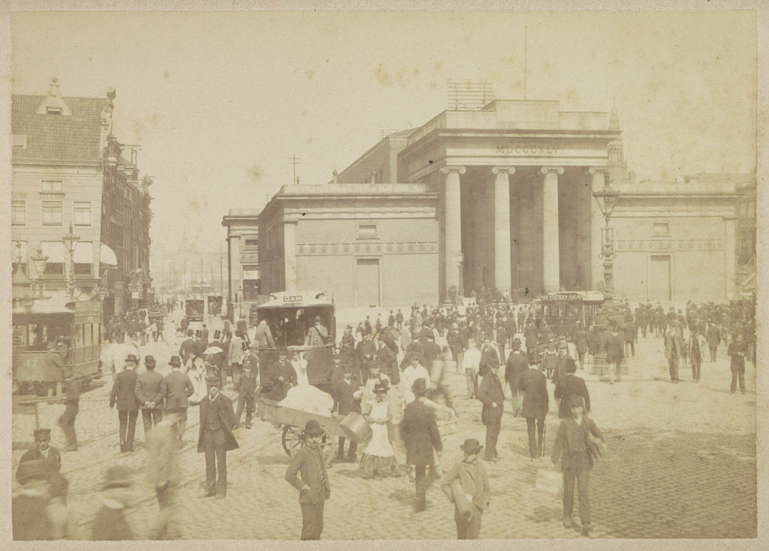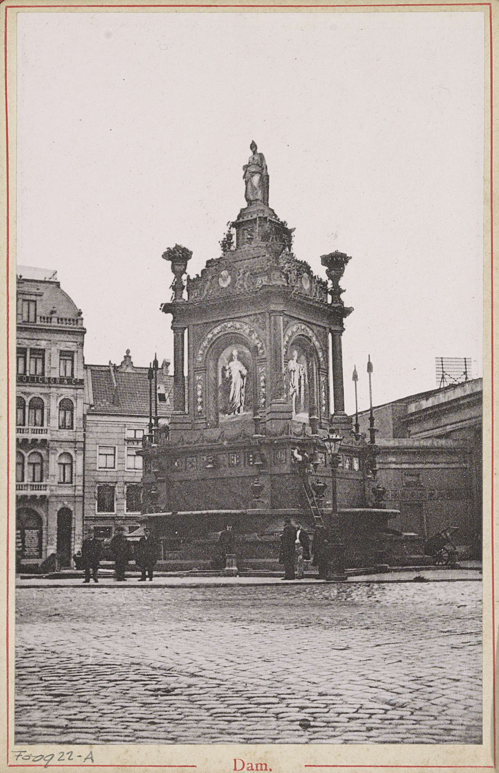 Gezicht op de Dam met links 'Naatje' en rechts de Be...