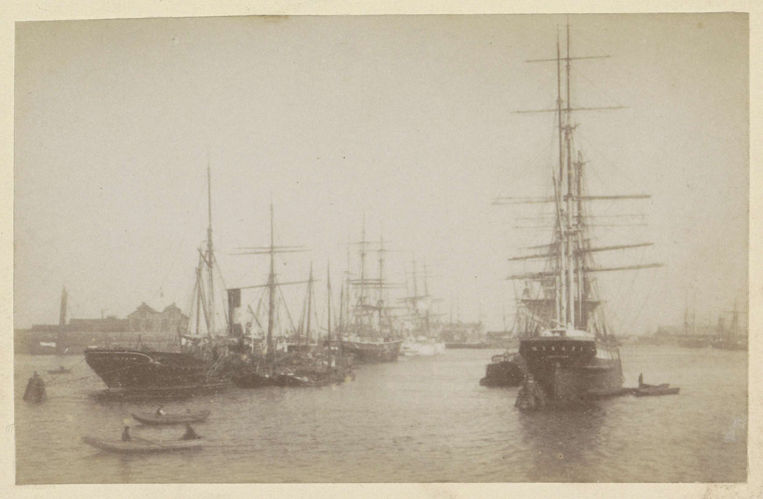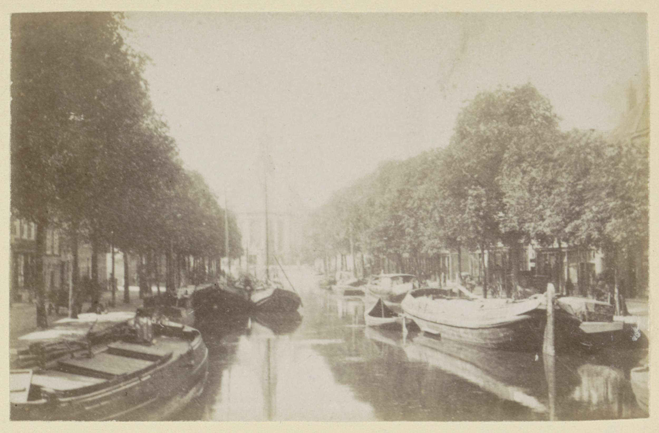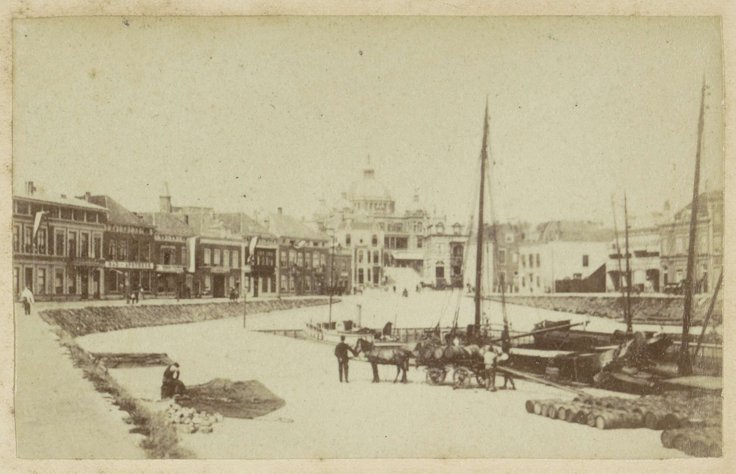 Schepen aan de Pijpenmarkt met op de achtergrond lin...