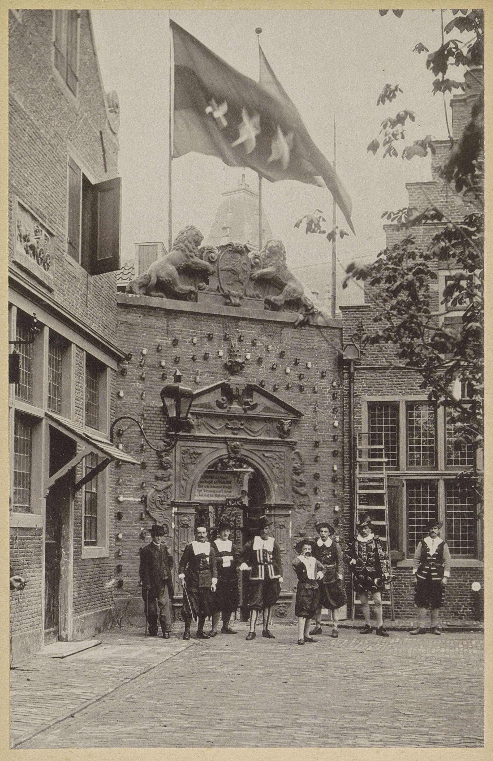 Straat met oud-Hollandse gevels en poort tijdens de ...