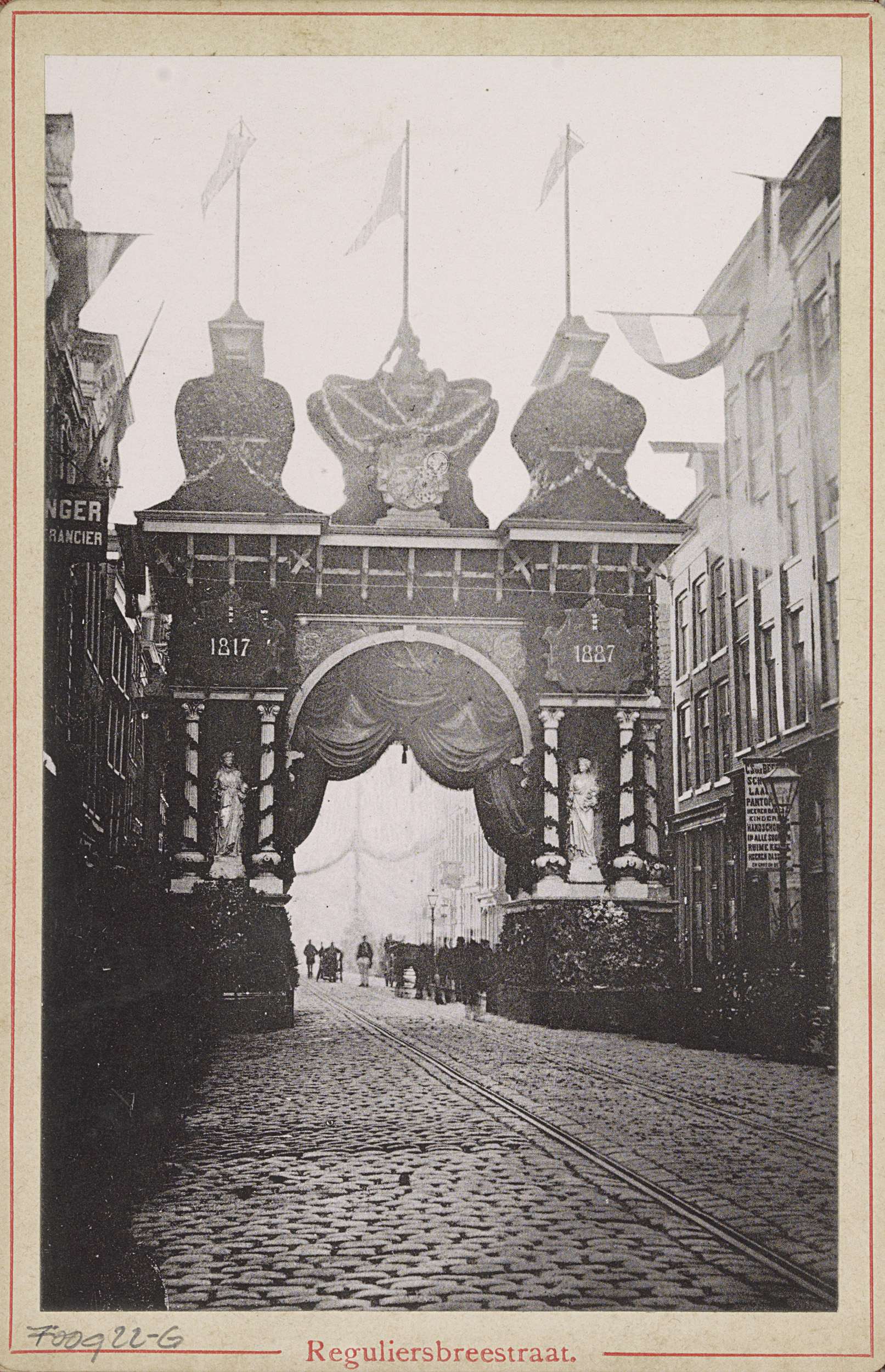 Erepoort in de Jodenbreestraat tijdens de Aprilfeest...