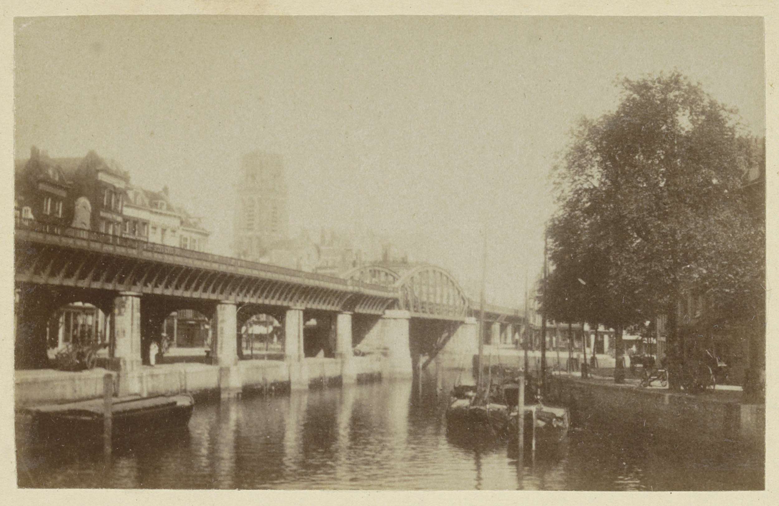 Gezicht op de Kolk in Rotterdam met spoorwegviaduct
