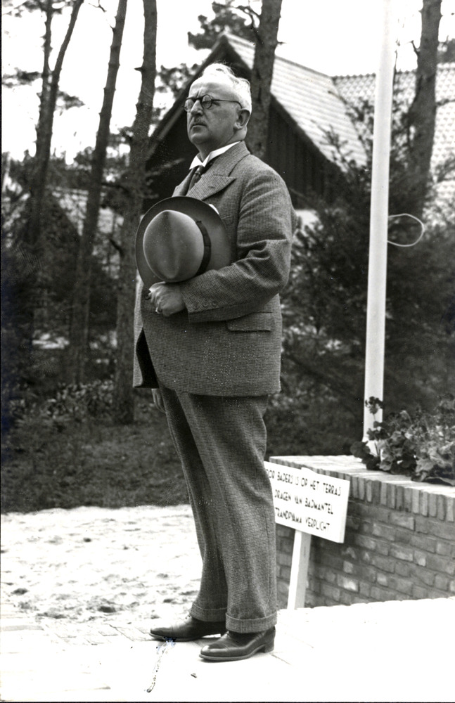 Wethouder C.H. Weverink (?) op het terras van het re...