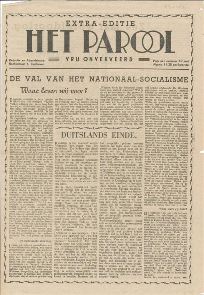 Het Parool, vrij onverveerd, Extra editie, De val va...