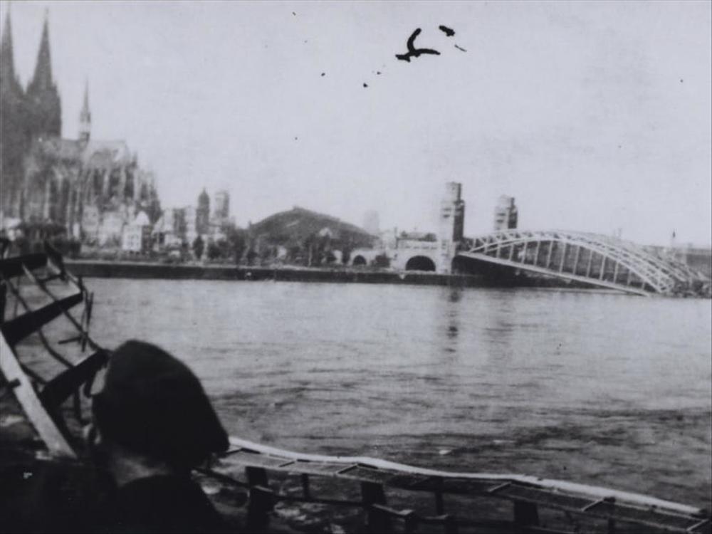 Foto van een schipbrug over de IJsel 1944