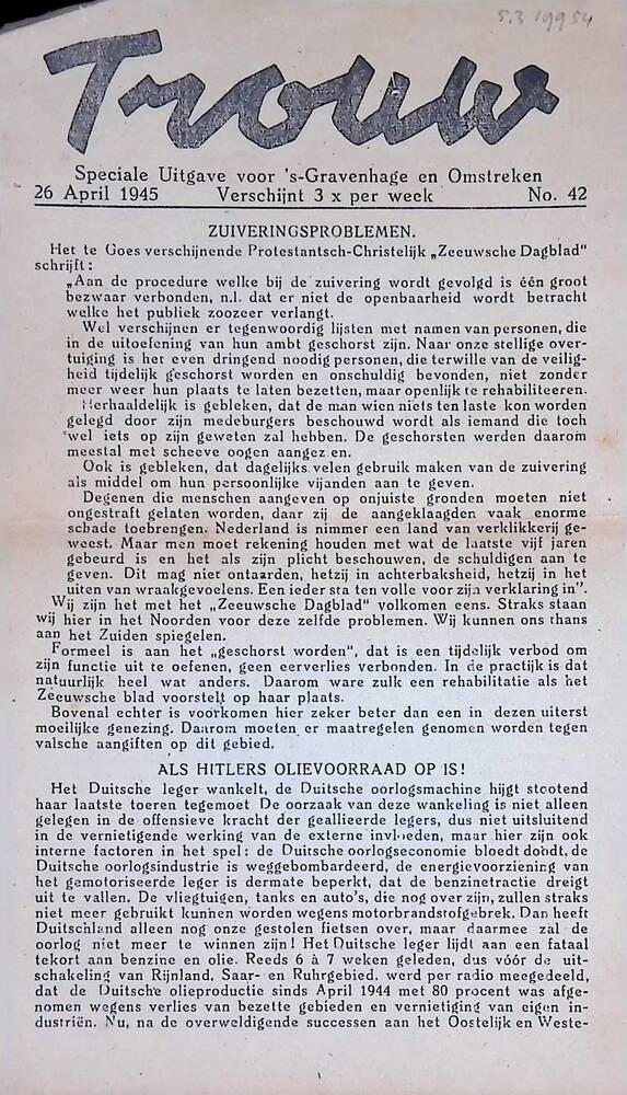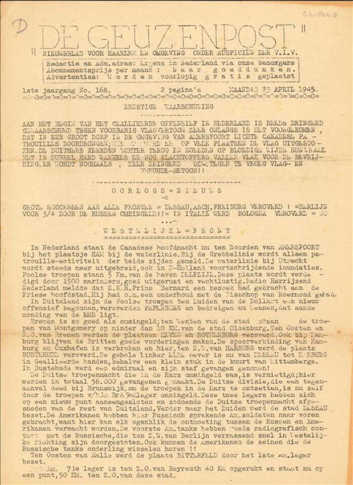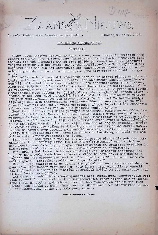 Zaans Nieuws ( Parool bulletin voor Zaandam en Omstr...
