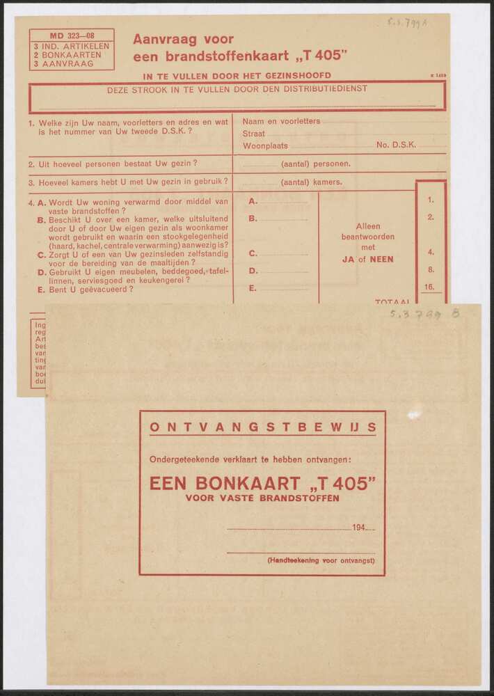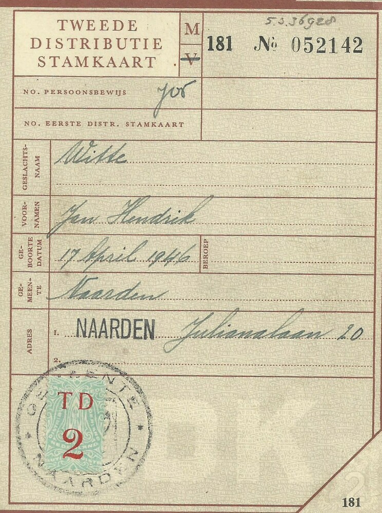 Tweede Distributiestamkaart op naam van Witte, Jan H...