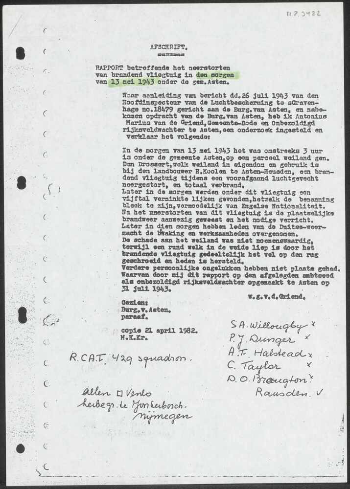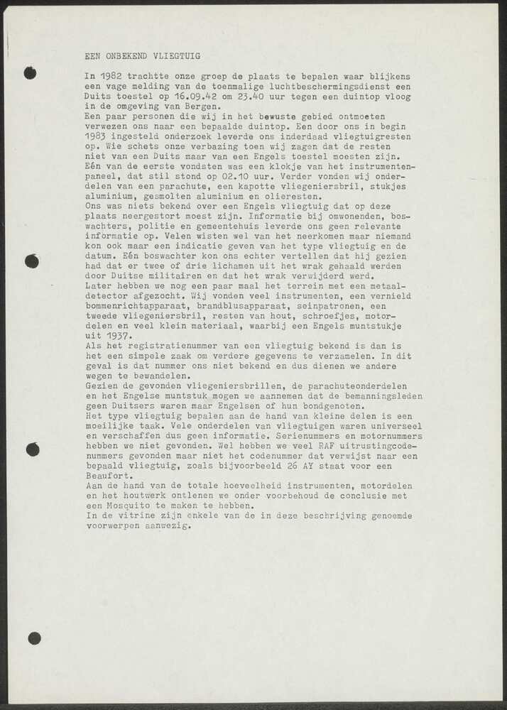 Uittreksel uit een boek betreffende neerstorten van ...