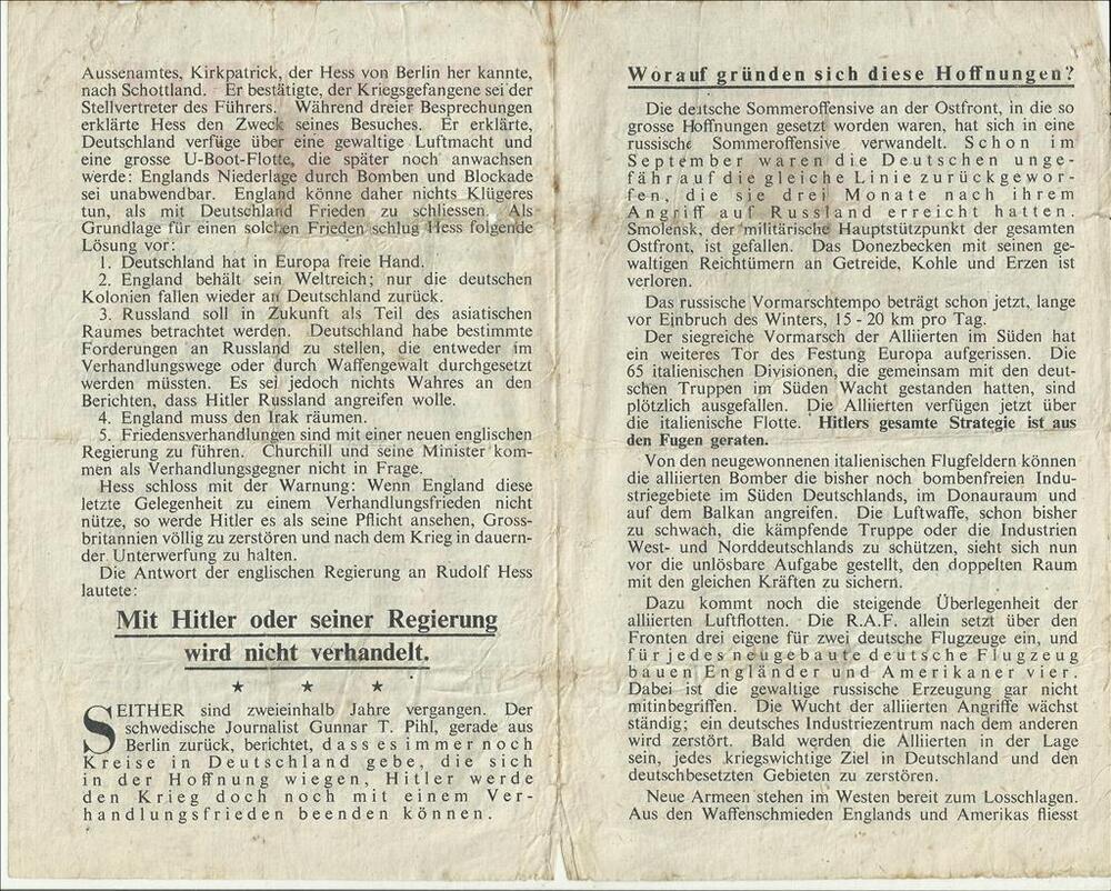 Pamflet:"Betr: Behandlung deutscher Kriegsgefangener...