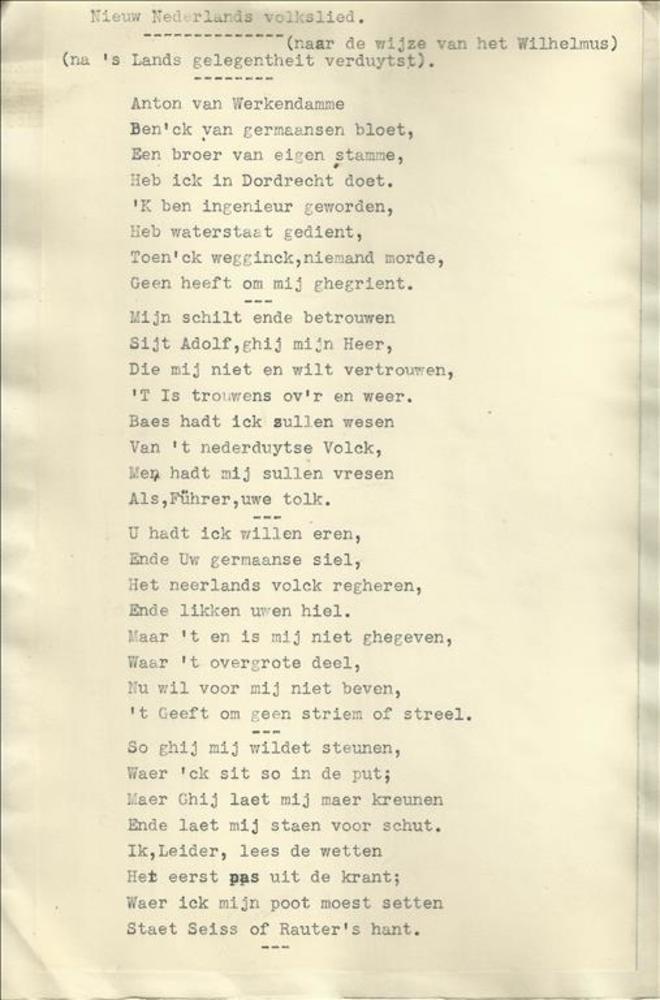 Vel papier met tekst Wilhelmus van Nassauwen opnieuw...