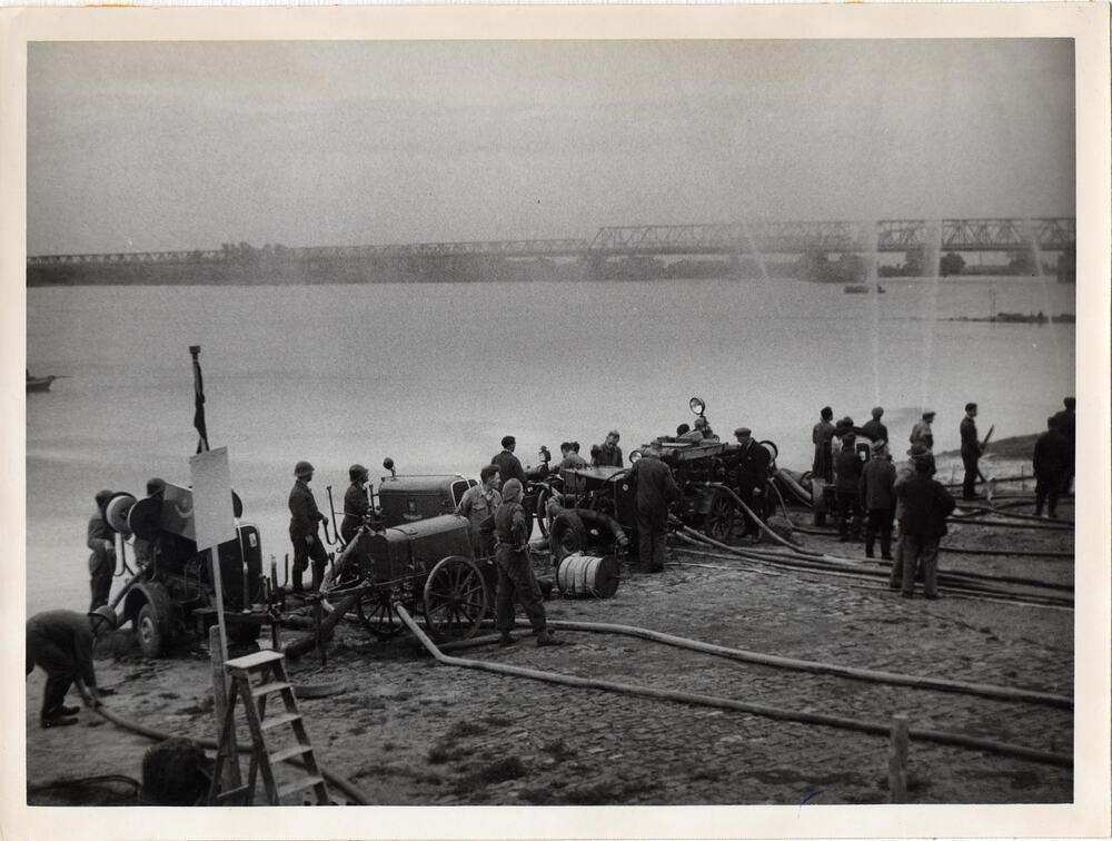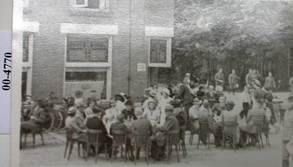 De heer Piet Joosten bij de pomp aan de Damstraat/La...