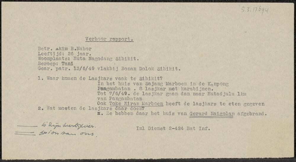 Verhoorrapport van Akim B. Nahor., ongedateerd.