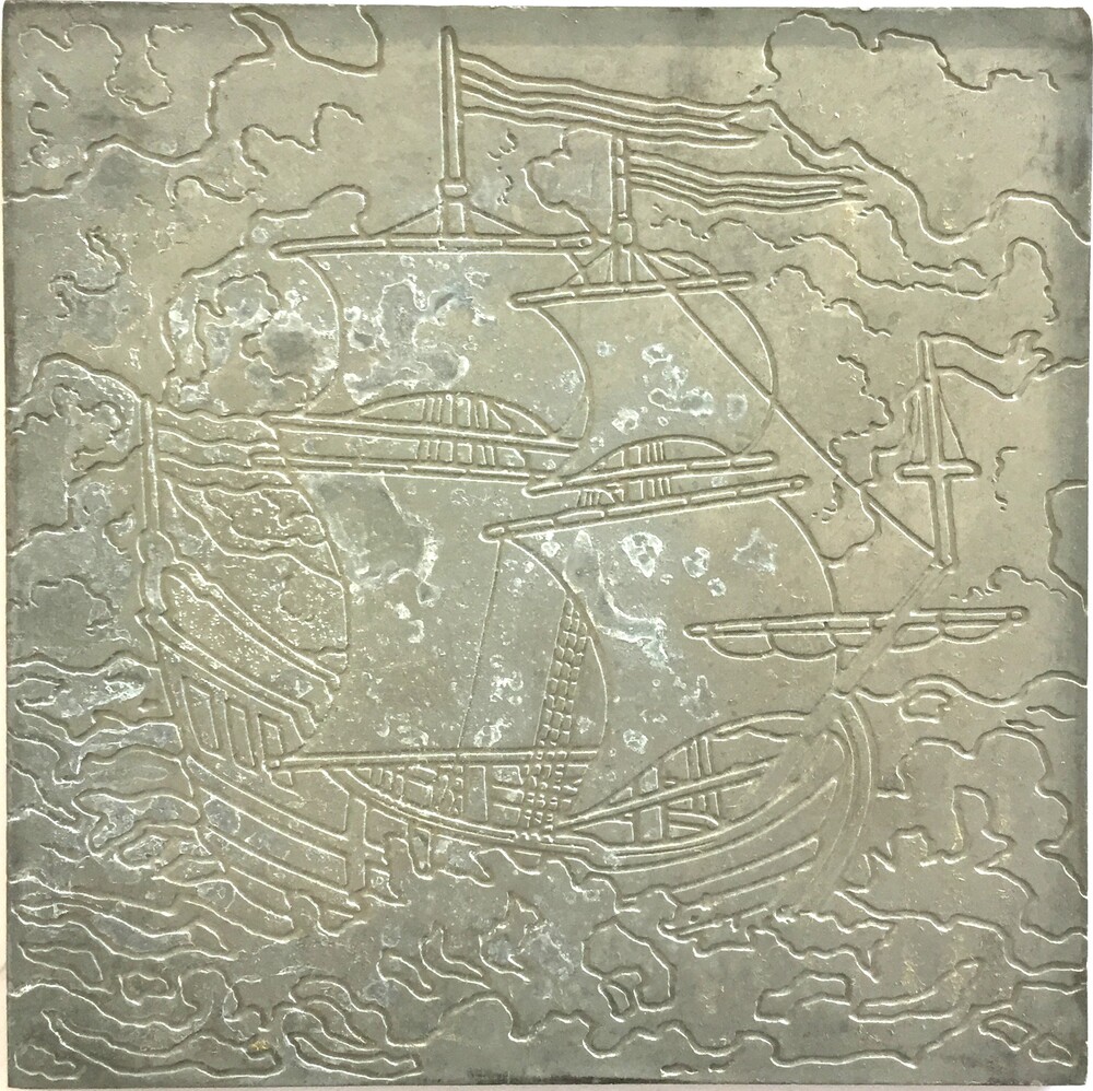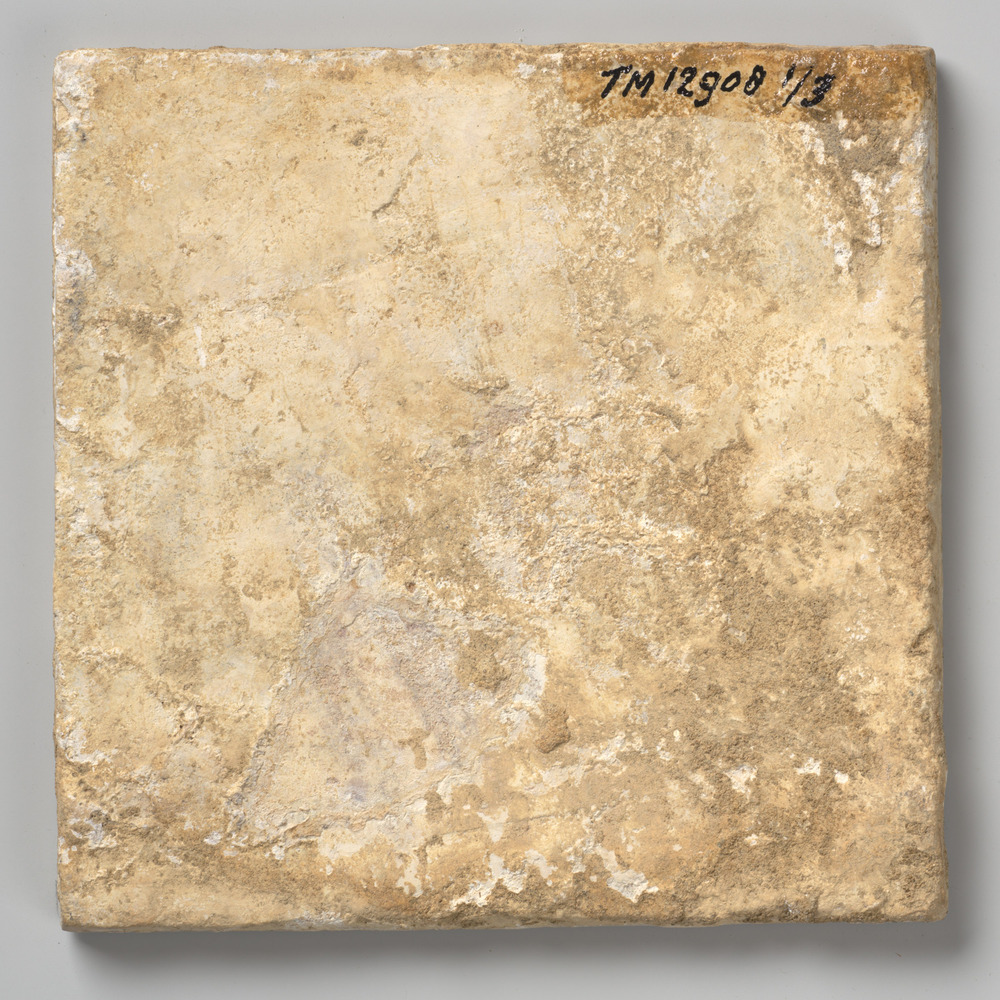 tegel van keramiek met tinglazuur, voorstellende: la...