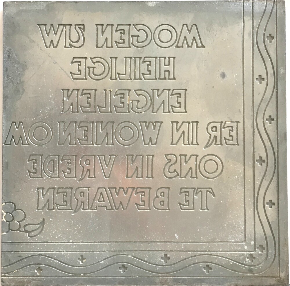 Tegel in tinglazuur, voorstellende plantmotief, verv...
