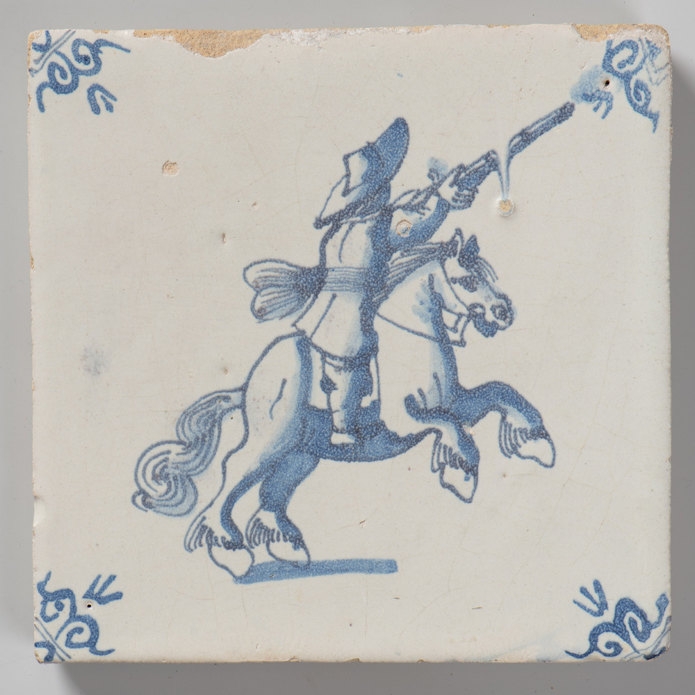 tegel van aardewerk met tinglazuur, voorstellende: h...