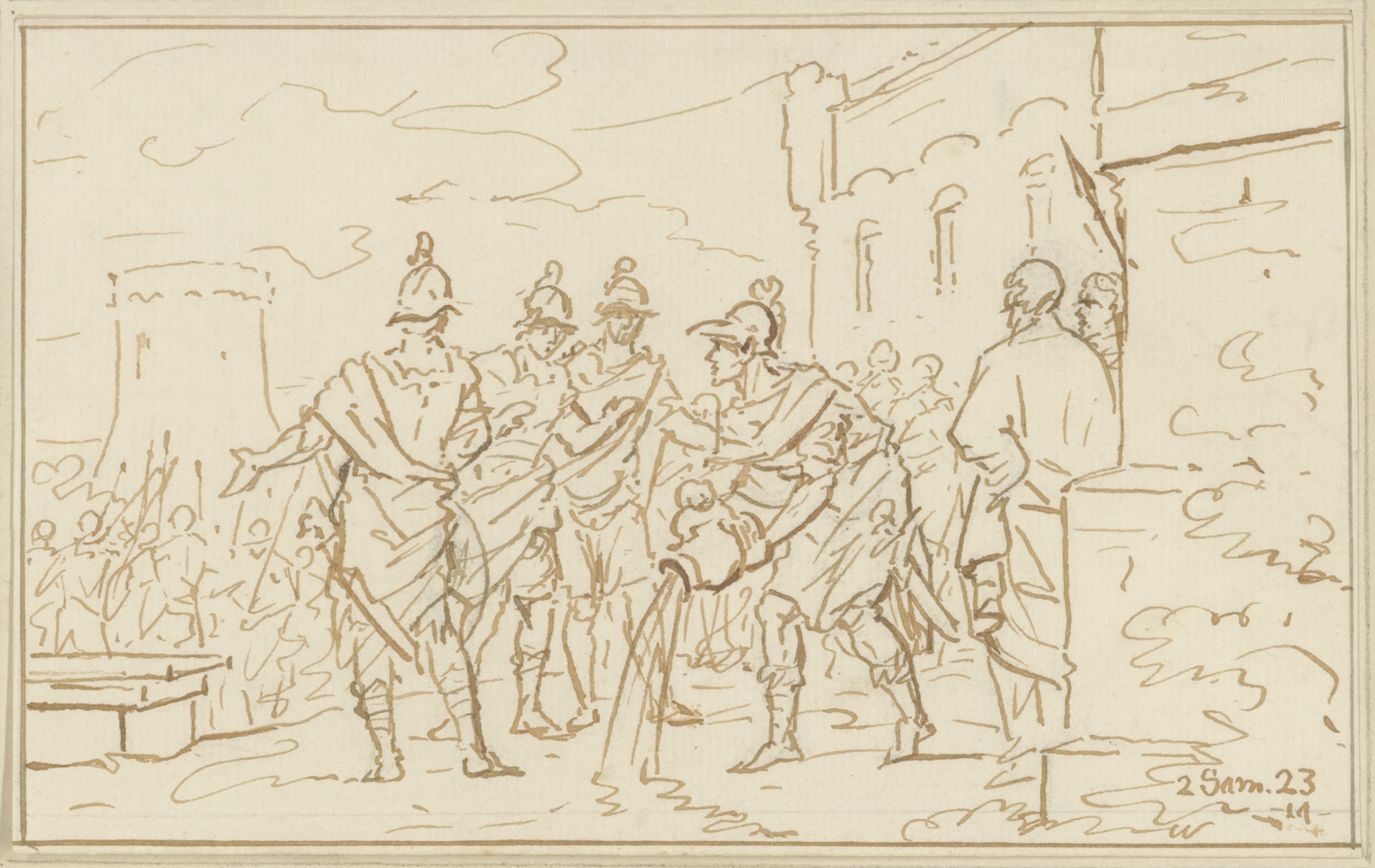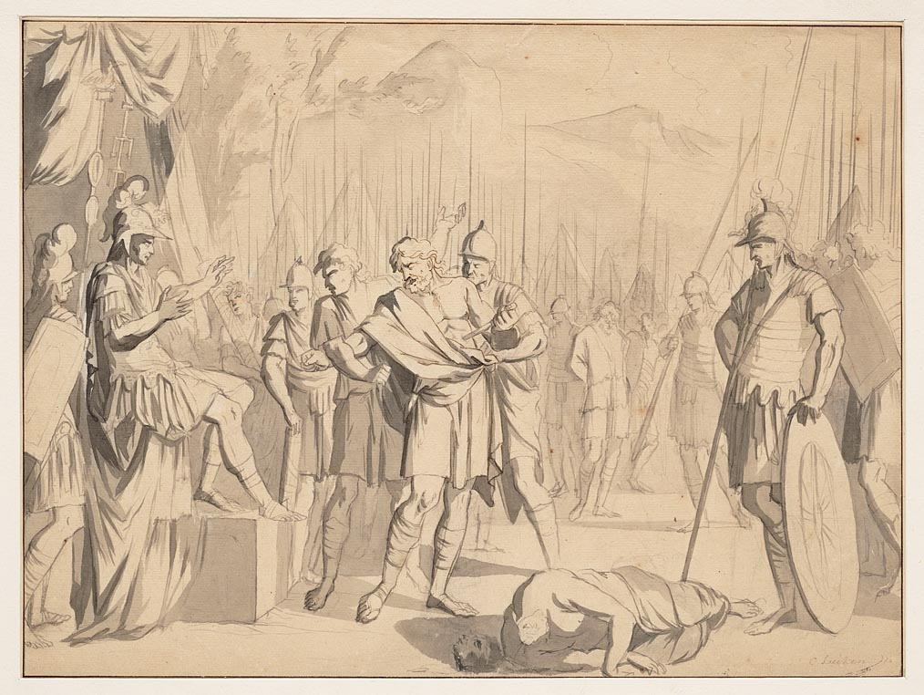 Romeins bevelhebber met soldaten en gevangenen