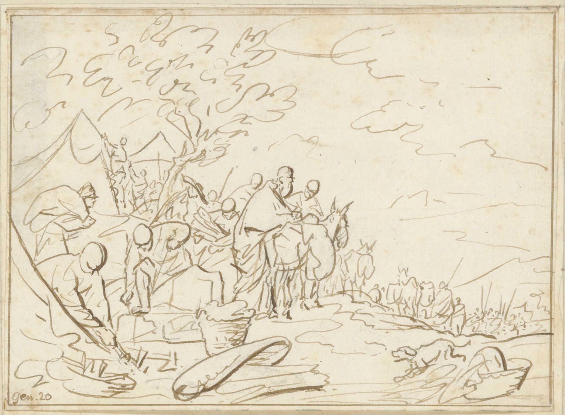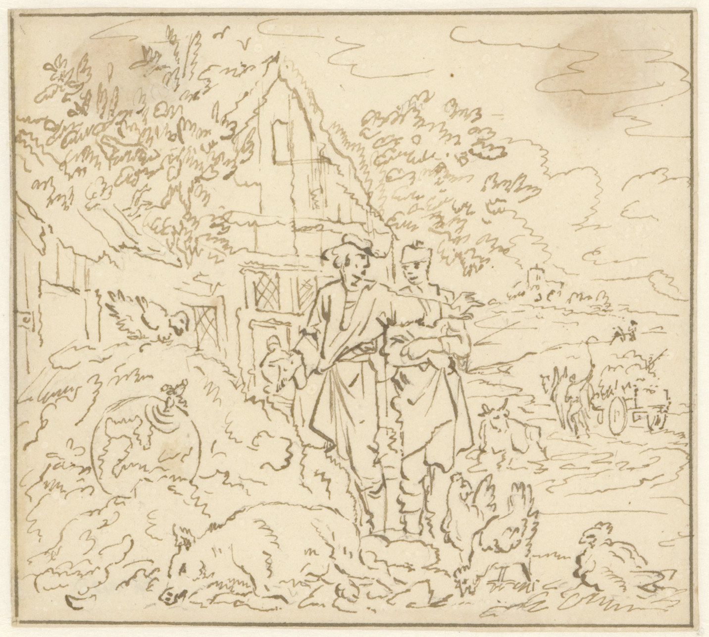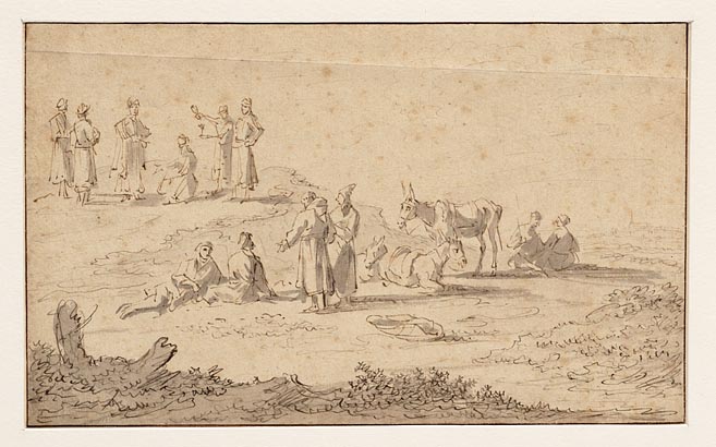 Landschap met mensen en ezels