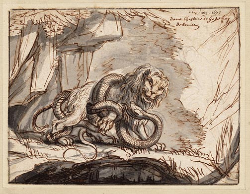 Gevecht tussen slang en leeuw