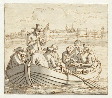 Pieter Pietersz. Bekjen predikt in een roeischuit op...