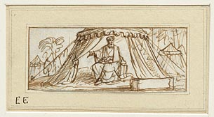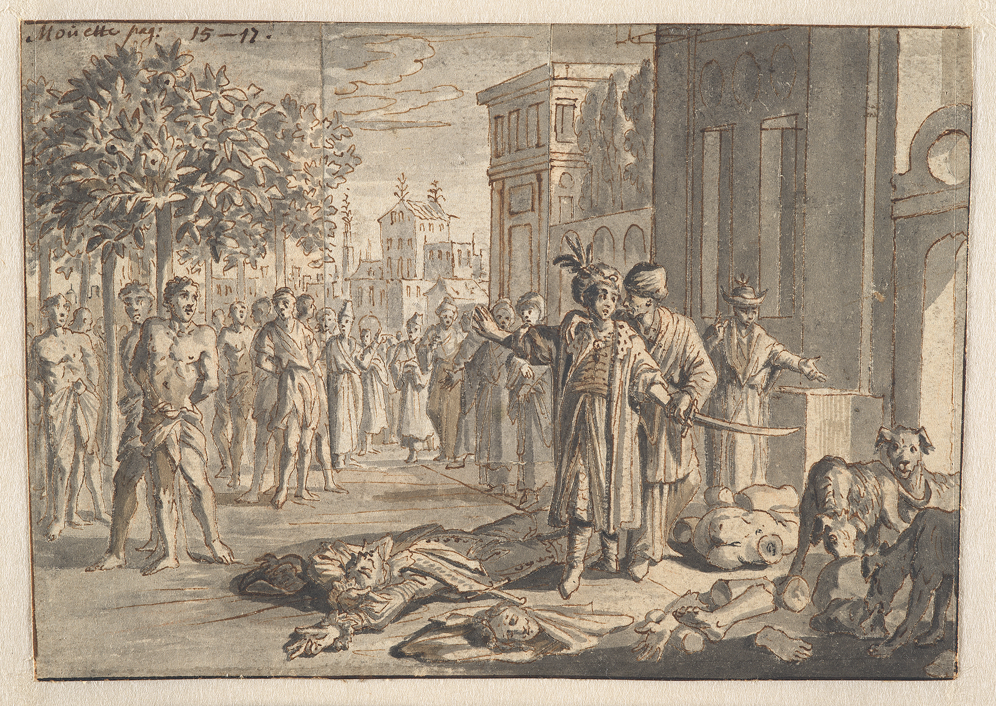 Een Turkse vorst met gedode gevangenen en aan bomen ...