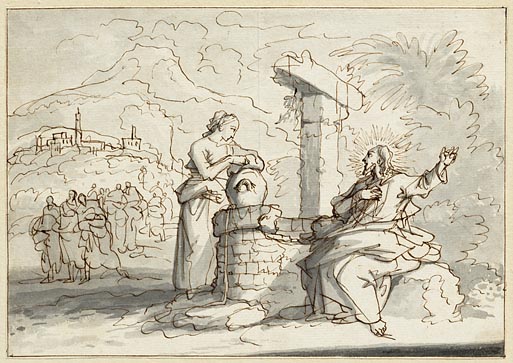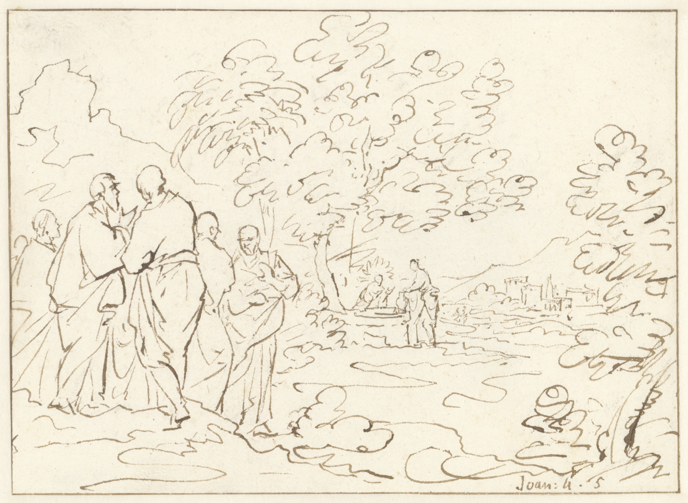 De terugkerende discipelen zien Jezus bij de Jacobsp...